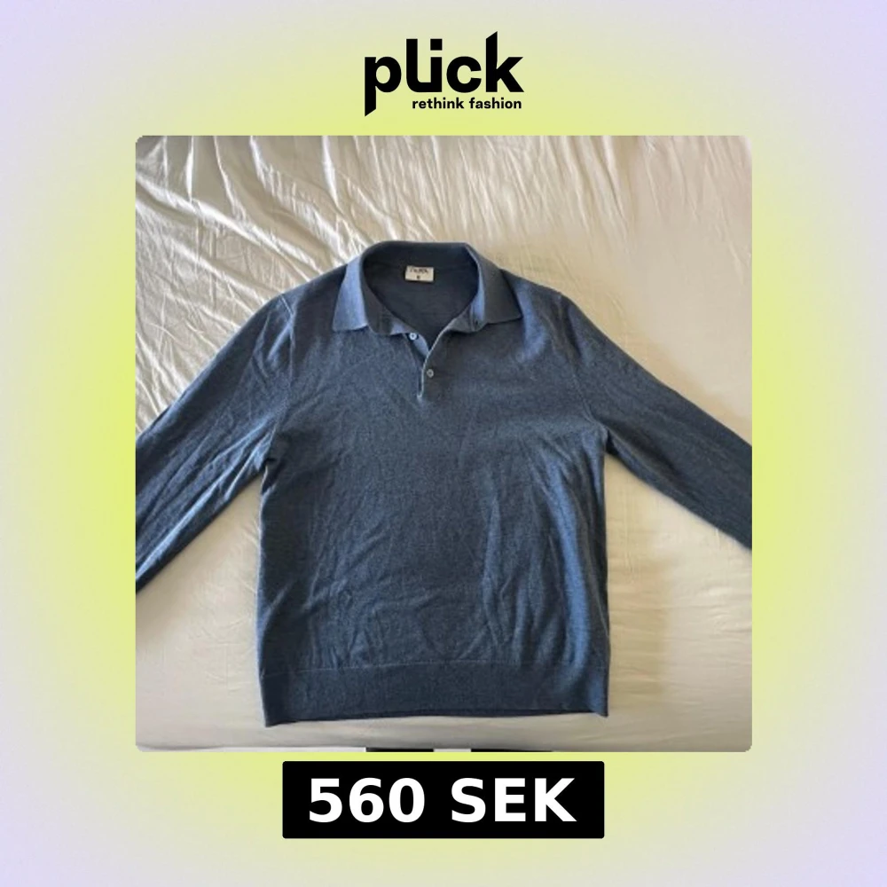 Snygg blå långärmad pikétröja från Filippa K med klassisk krage och knäppning framtill. Tröjan är tillverkad i mjuk ull och har en stilren, minimalistisk look som passar perfekt till jeans eller chinos.