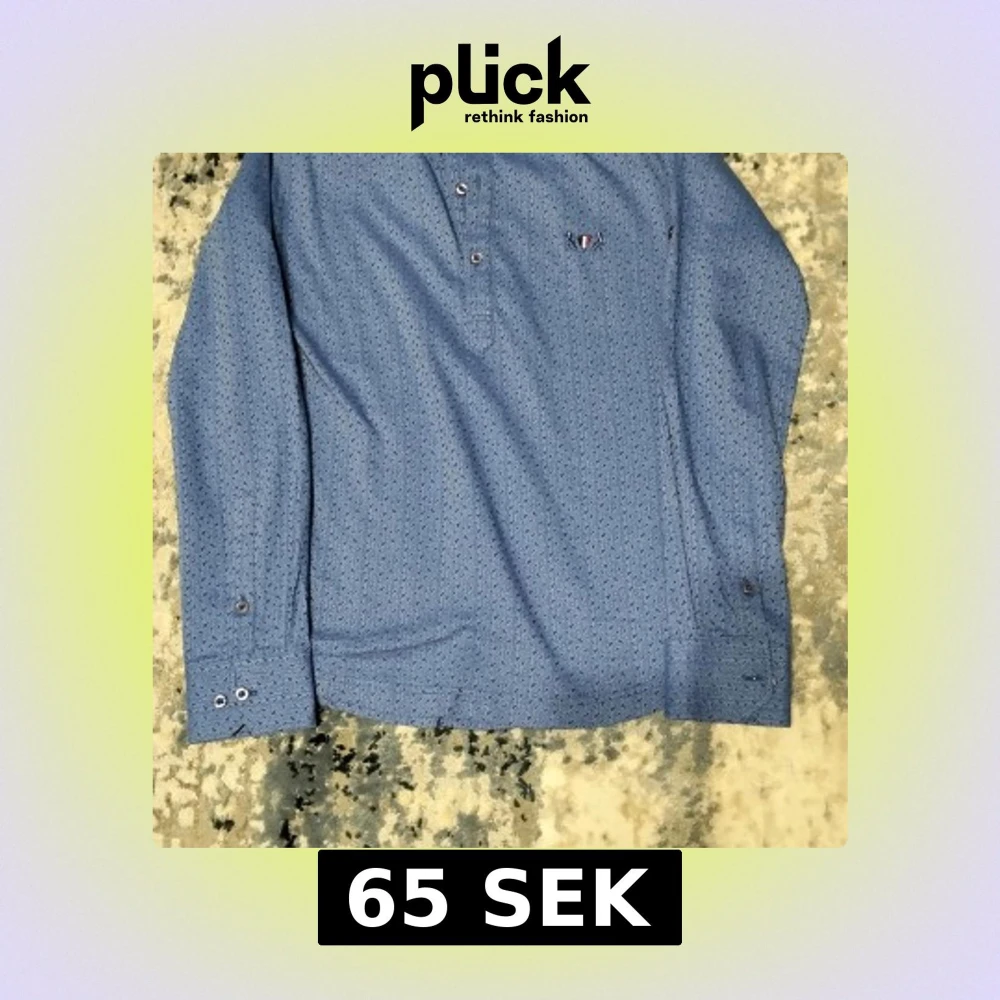 Snygg blå pikétröja med diskret mönster och knappar framtill. Tröjan har långa ärmar och en liten broderad logga på bröstet. Perfekt för en stilren look.