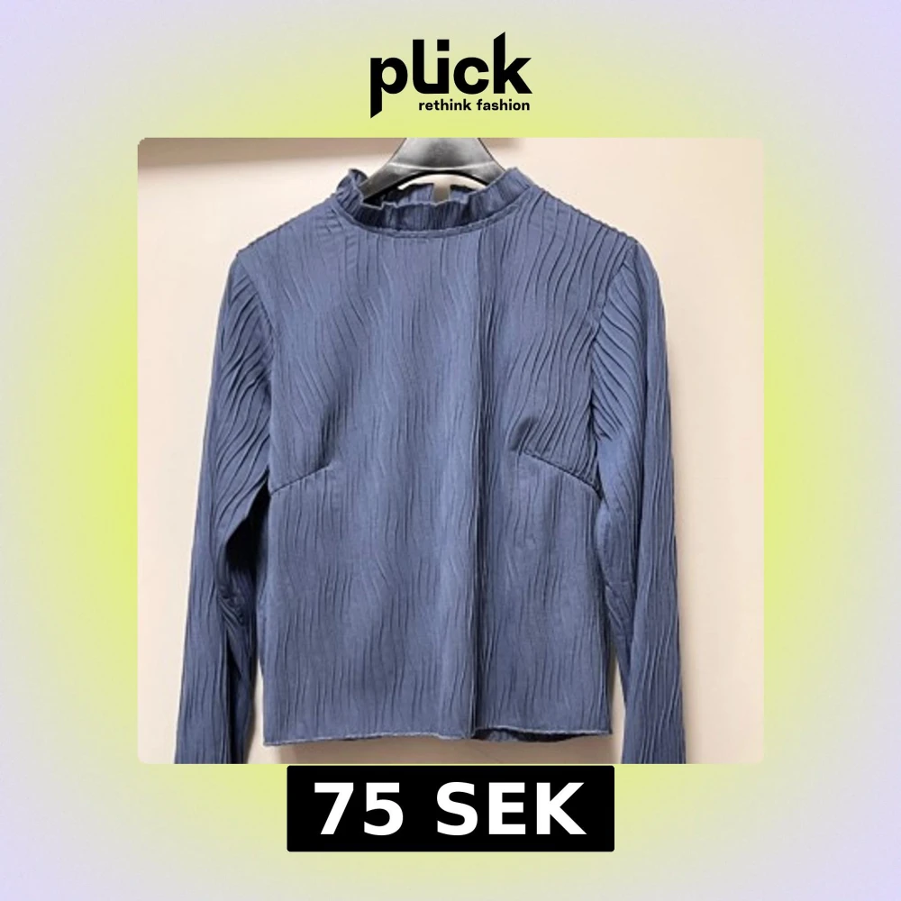 Säljer en blå långärmad topp från Dazy i storlek S. Toppen har ett ribbat, vågigt mönster och en hög hals med lätt rynkad kant. Materialet känns mjukt och har en snygg struktur som ger en cool vibe. Perfekt för dig som gillar stilrena detaljer.