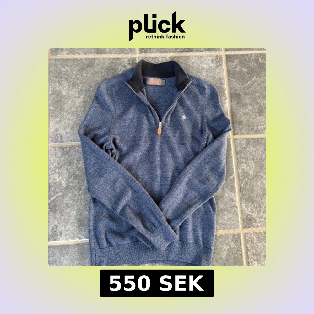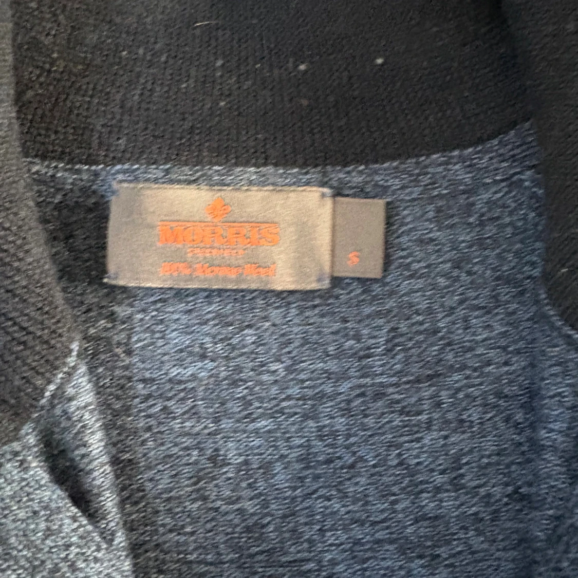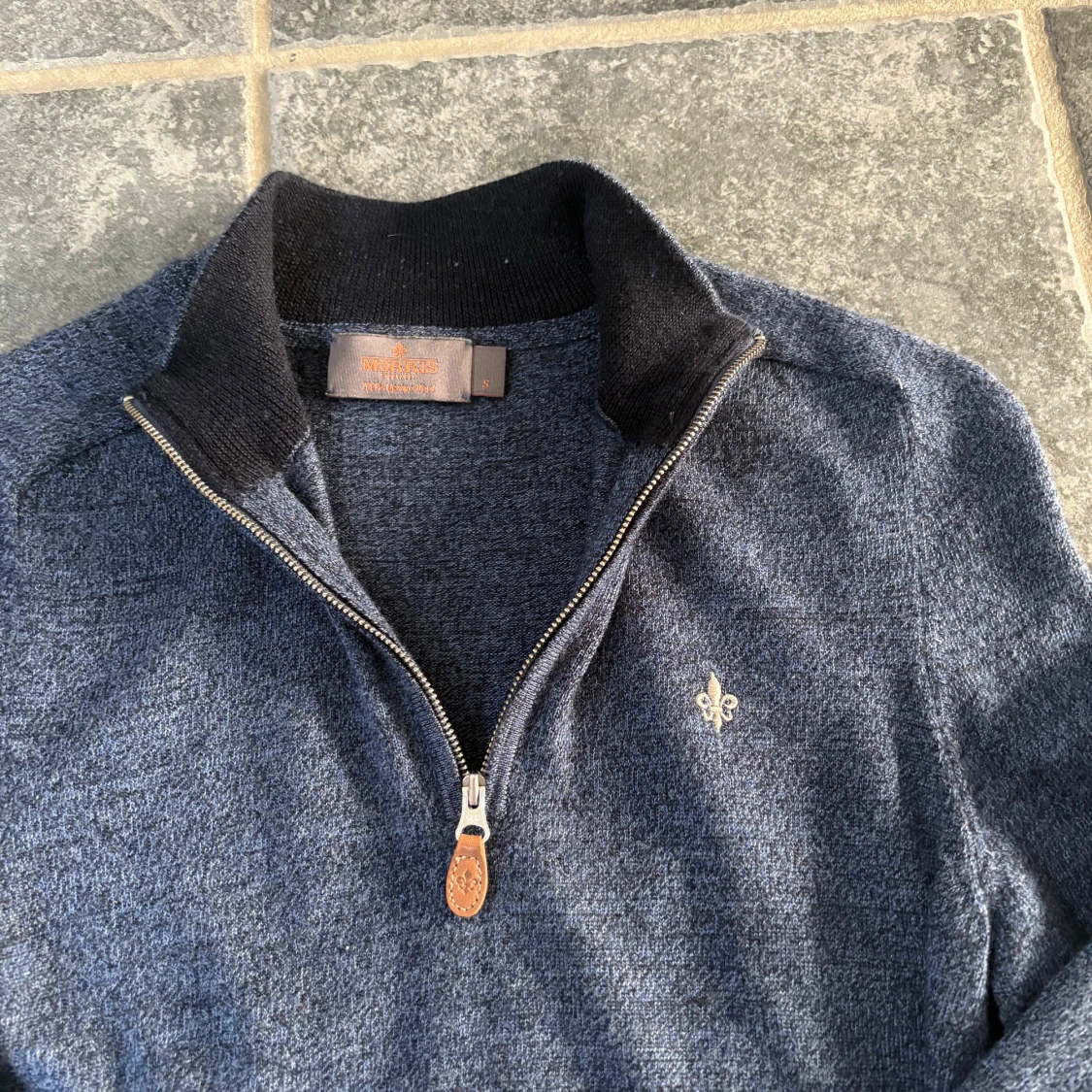 Snygg mörkblå stickad tröja från Morris med half zip och liten broderad logga på bröstet. Tröjan har ribbade muddar och krage i svart, vilket ger en schysst kontrast. Perfekt för dig som gillar klassisk stil med en modern touch.