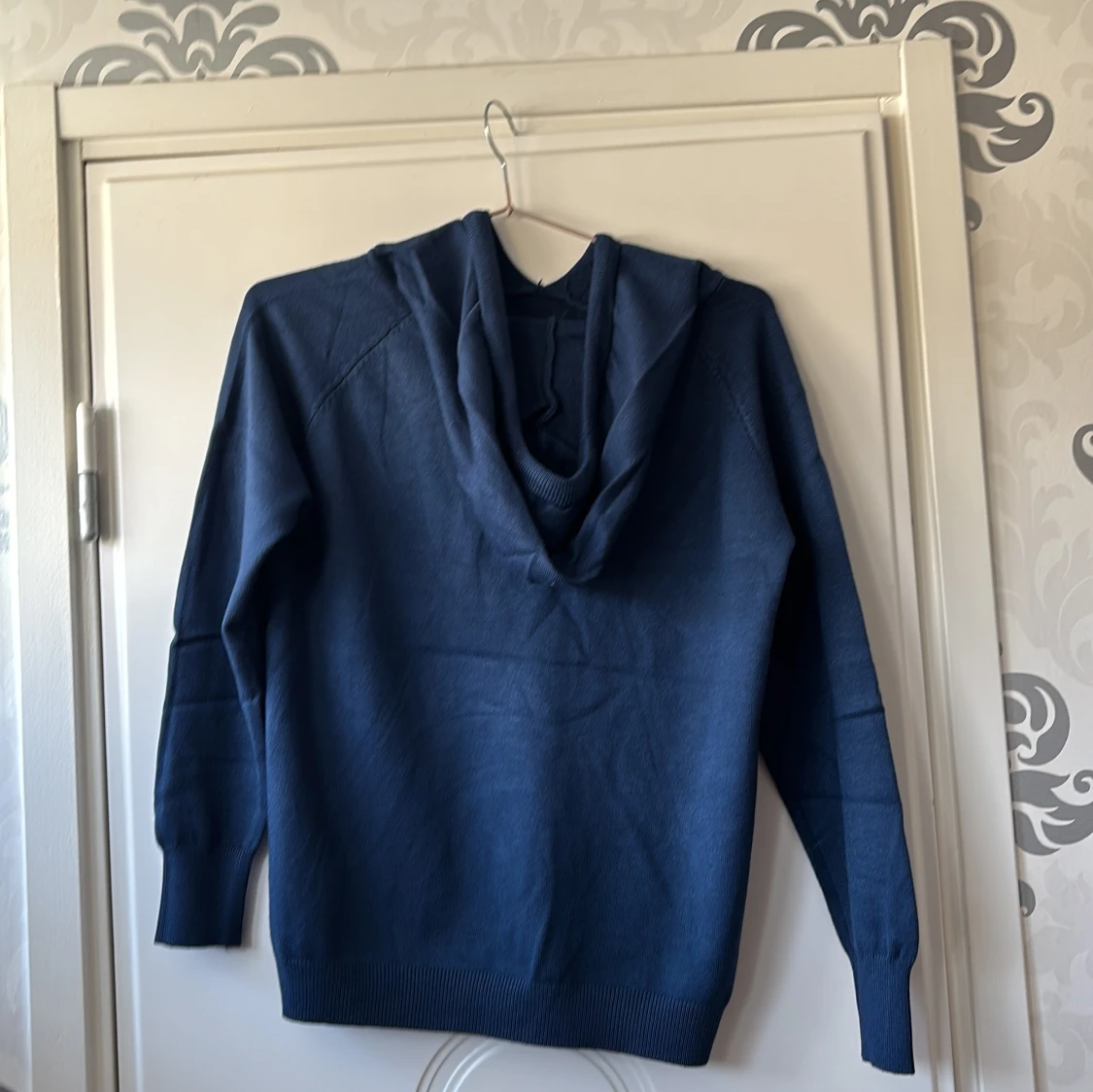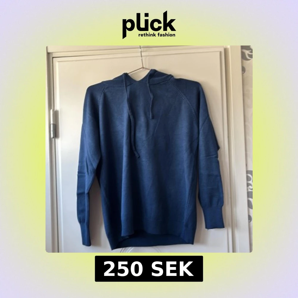 Mysig blå stickad hoodie med huva och dragsnören. Tröjan är helt ny asså aldrig använd verkligen för den var för liten och då tänkte jag sälja vidare den