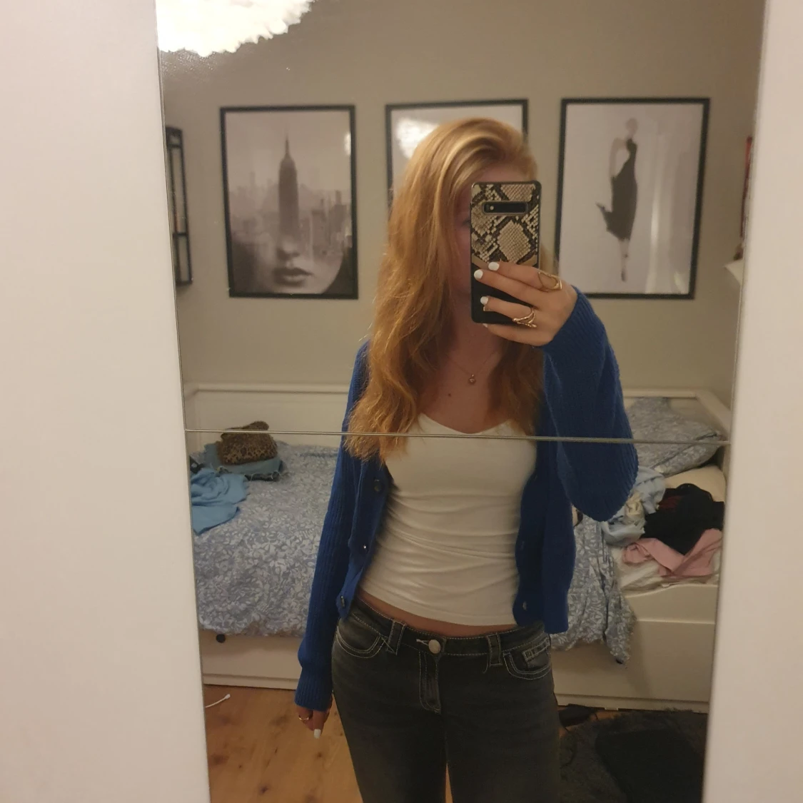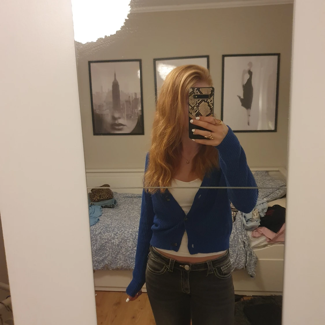 Blå stickad kofta med knappar