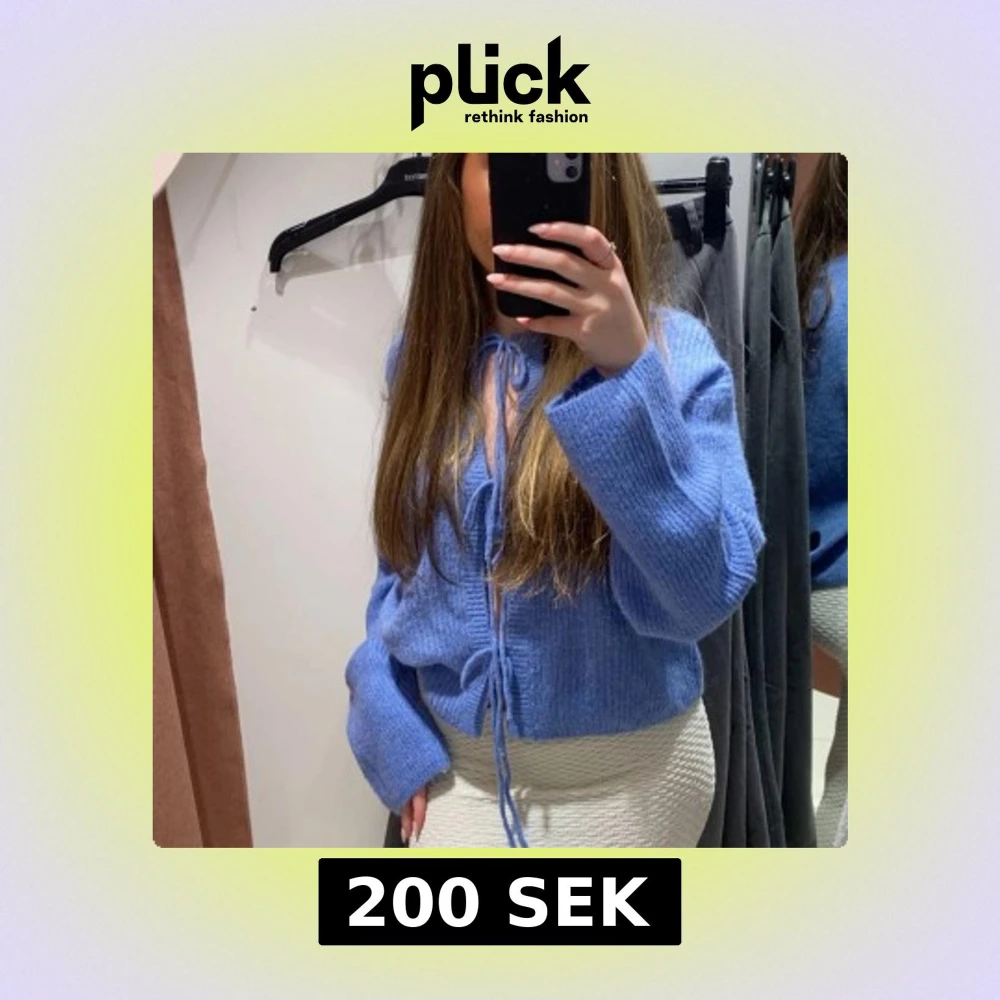 Blå stickad kofta med snörning