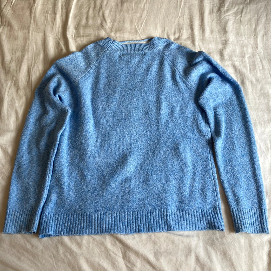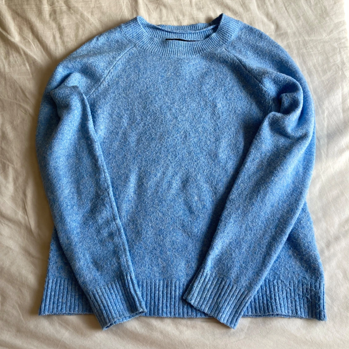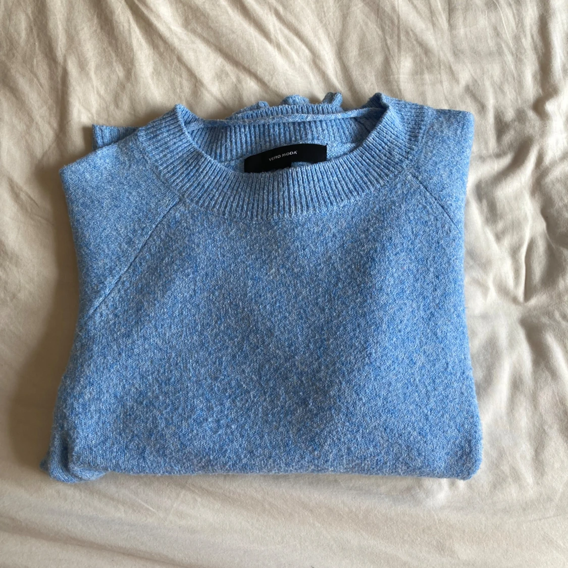 Säljer min ljusblå stickade tröja från vero moda. Tröjan är använd max 3 gånger och är i jättebra skick.