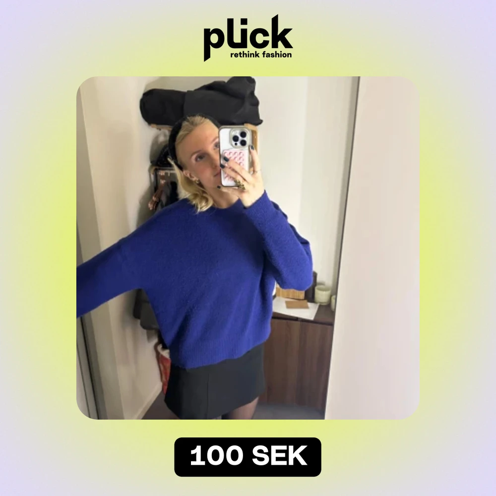 Säljer en superfin blå stickad tröja som är perfekt nu i höst. Den har en normal passform och långa ärmar, vilket gör den både bekväm och stilren. Perfekt att matcha med jeans eller kjol för en avslappnad look.