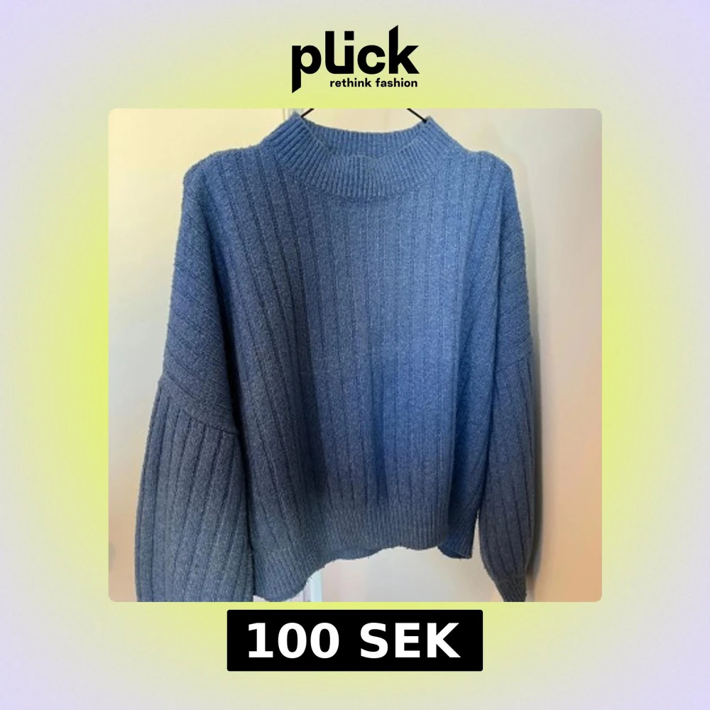Säljer en snygg blå stickad tröja från Even&Odd. Tröjan har en ribbad design och använd ett fåtal gånger
