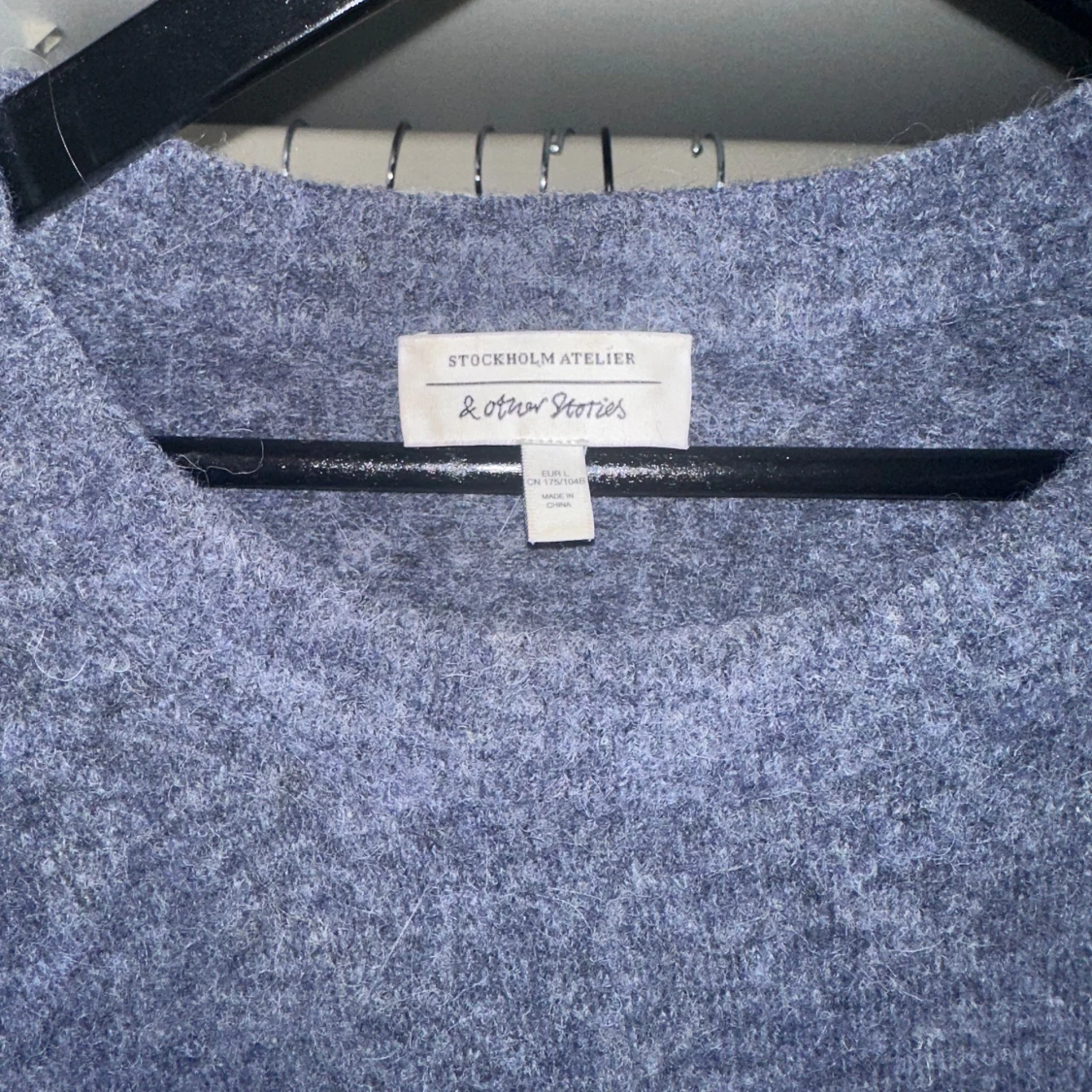 Mysig blå stickad tröja från & Other Stories. Perfekt för kyliga dagar med sin bekväma passform och långa ärmar. En stilren och enkel design som passar till många olika outfits. Köptes för 800kr