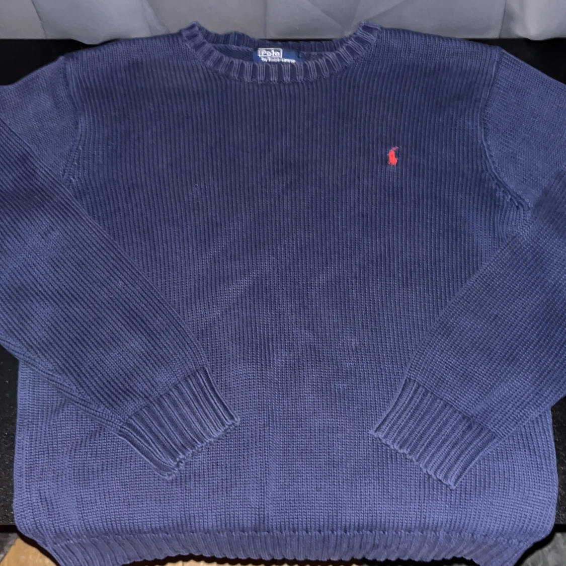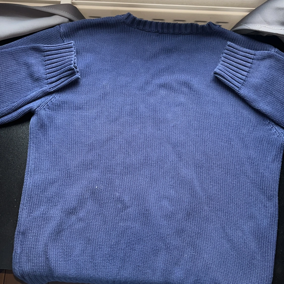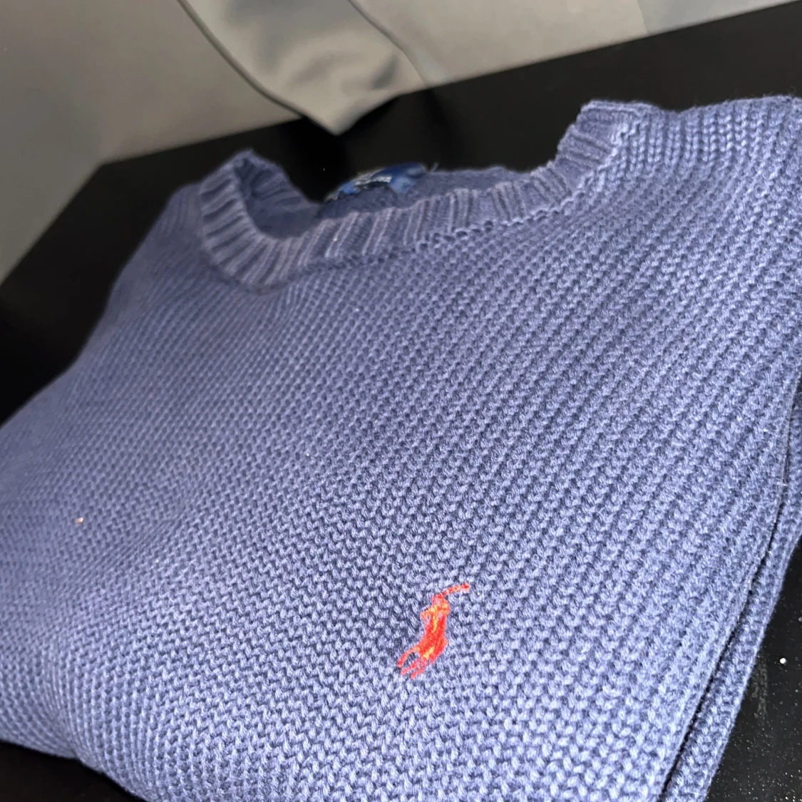 Säljer en klassisk blå stickad tröja från Polo Ralph Lauren. Tröjan har rund halsringning, långa ärmar och den ikoniska röda broderade loggan på bröstet. Inget fel på den förutom att den är lite urtvättad som syns på bilderna, inget som syns på avstånd eller något man tänker på! Hör av er vid minsta fundering 🤗