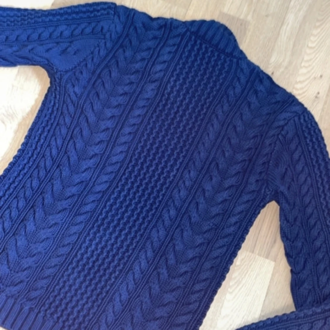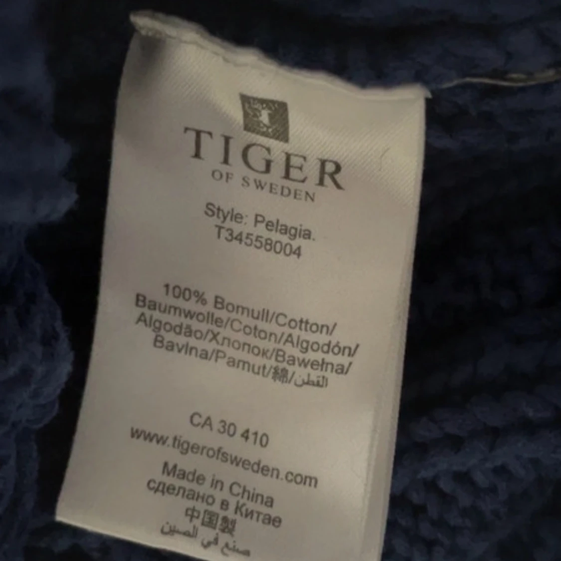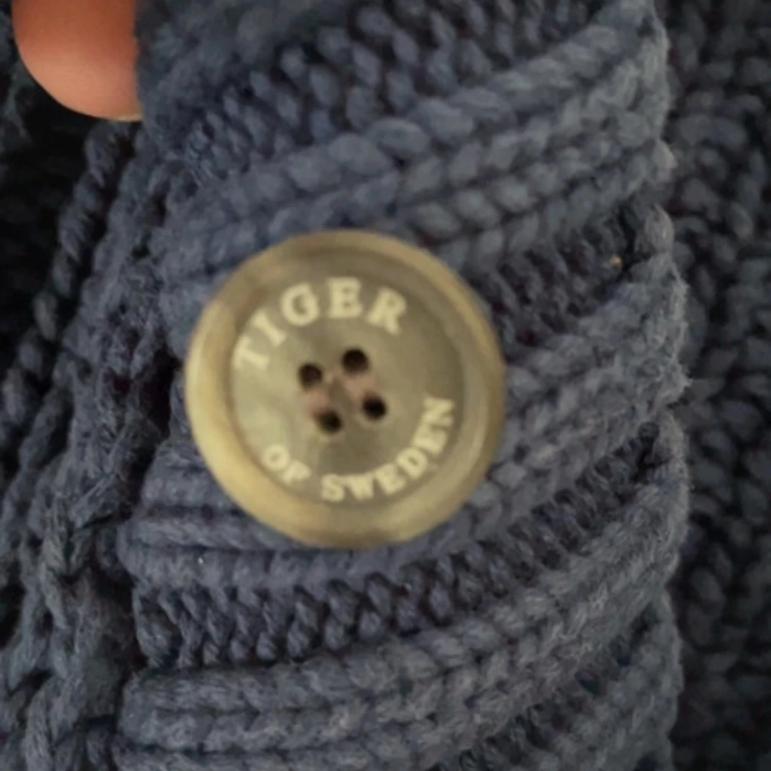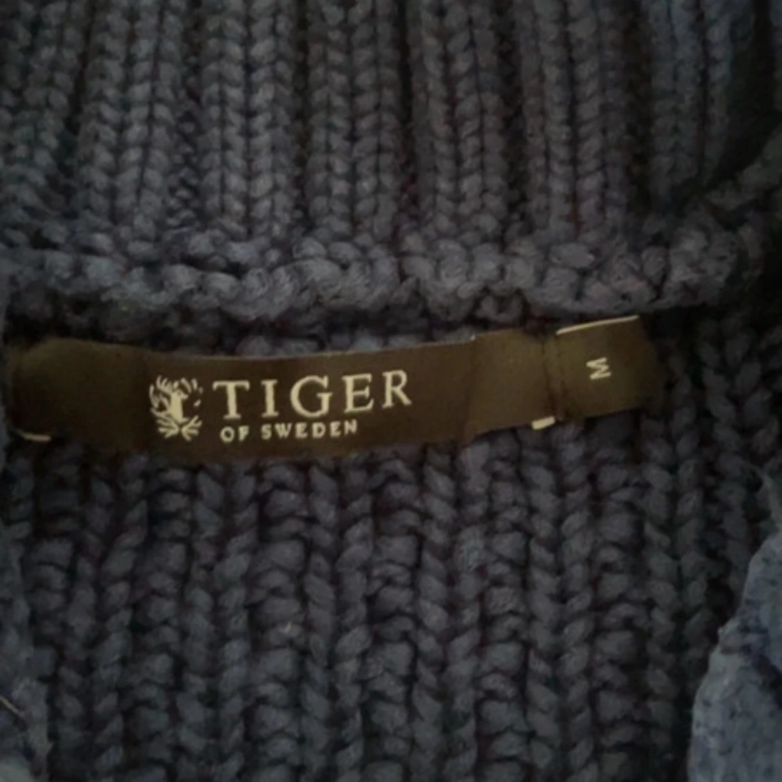 Säljer en snygg blå stickad tröja från Tiger of Sweden. Tröjan är av väldigt tjockt material. Storlek M men upplever att den sitter mer som S. En mindre missfärgning vid en av armarna men inget som syns vid användning.