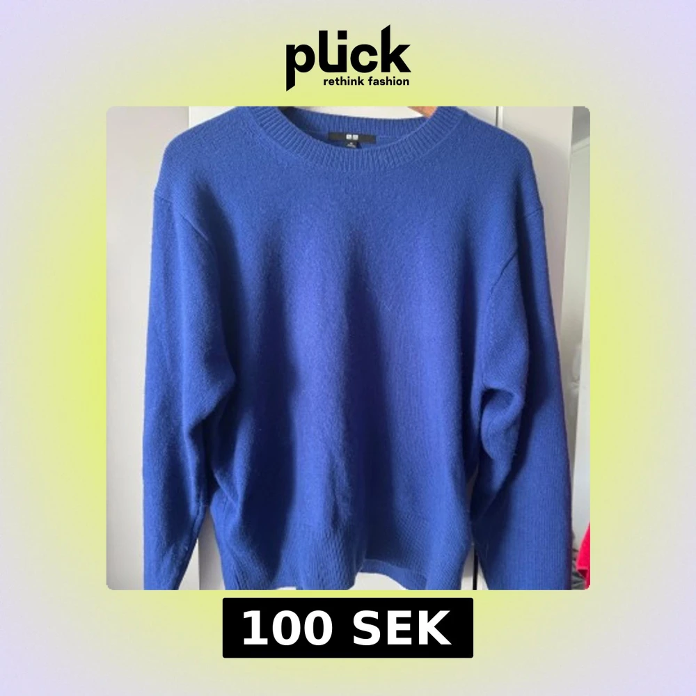 En klassisk blå stickad tröja från Uniqlo med rund halsringning och ribbade muddar. Tröjan har en relaxed passform och är perfekt för lager-på-lager. Enkel och stilren design som funkar till allt.