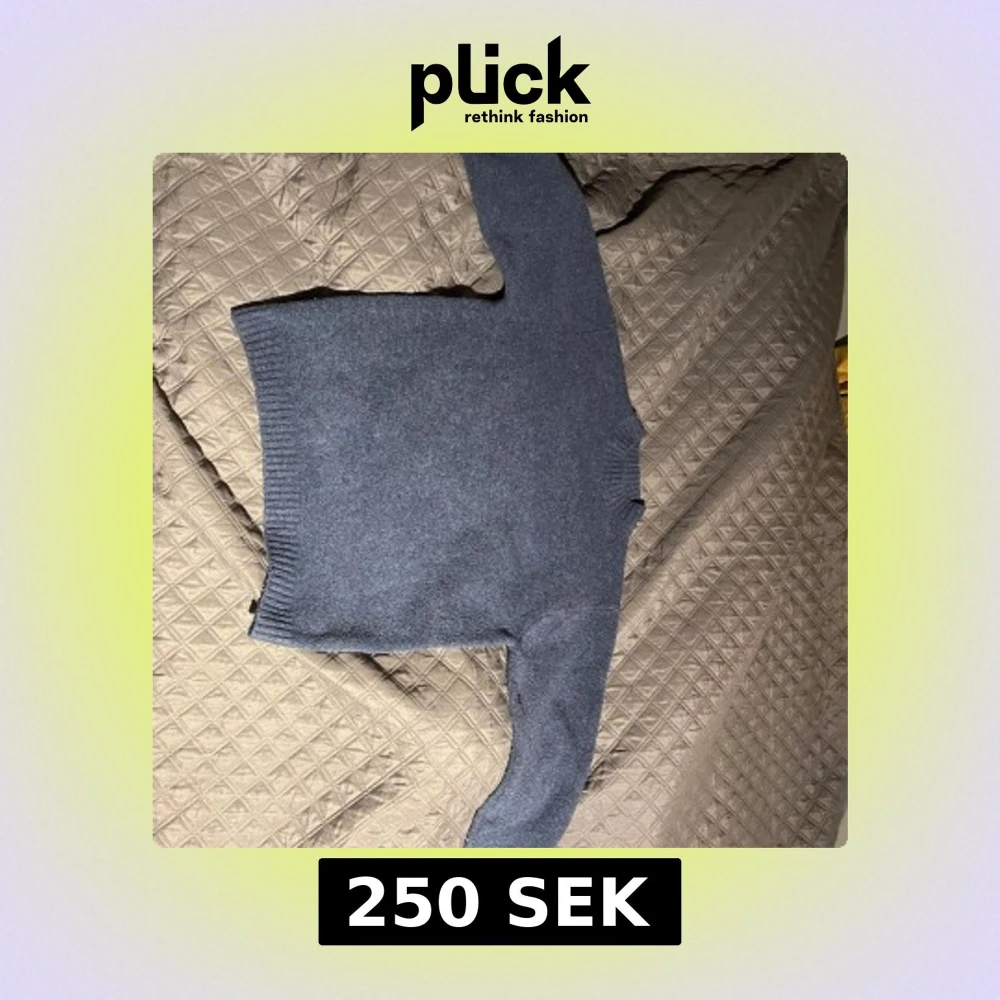 Säljer en stilren blå stickad tröja från Uniqlo i storlek XS. Tröjan har en klassisk design med ribbade muddar vid ärmslut och nederkant, perfekt för kyligare dagar. Använd cirka 3 gånger. Nypris 500kr och mitt pris 250kr.