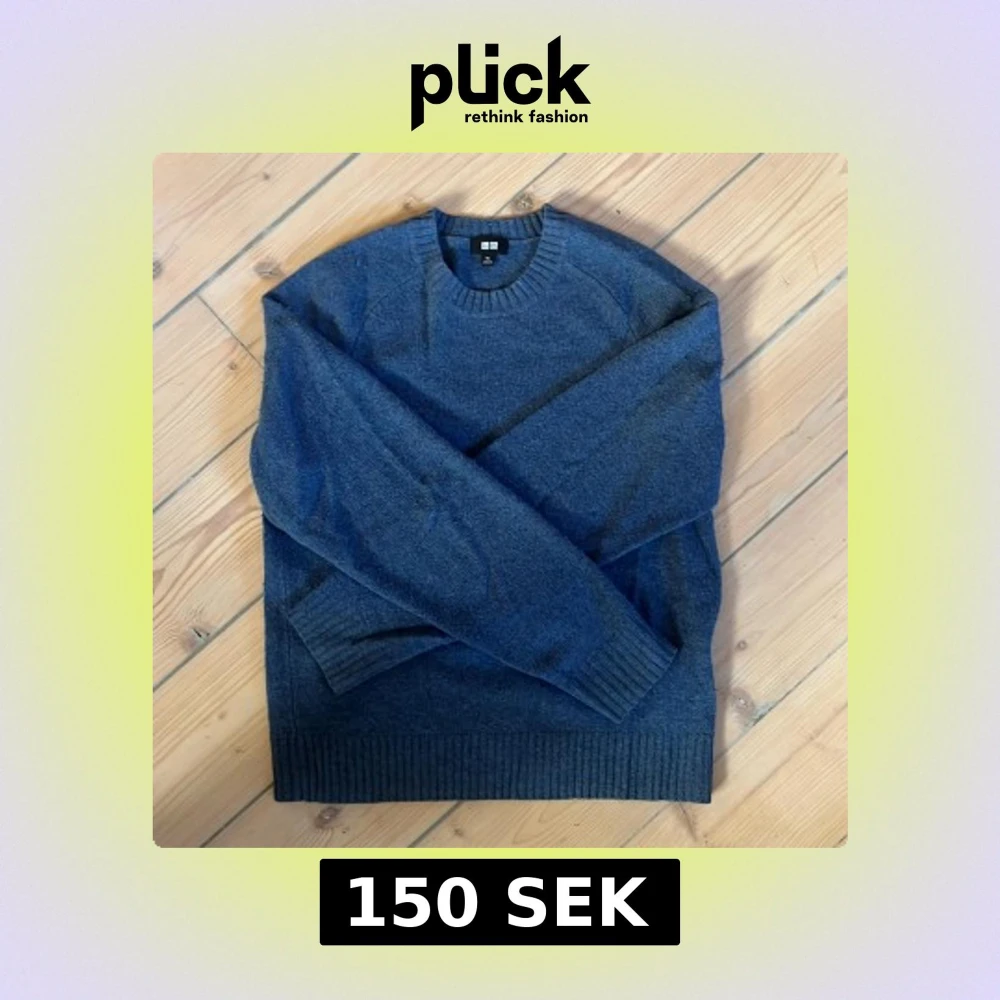Jag säljer en blå stickad tröja från Uniqlo i storlek XS. Tröjan har rund halsringning, ribbade muddar vid ärmslut och nederkant samt långärmad passform. Tröjan är i bra skick men har ett litet hål på baksidan. Perfekt för kyliga dagar och enkel att matcha med jeans.