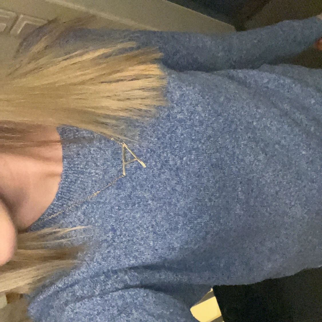 Säljer en mysig blå stickad tröja med långärmad design. Perfekt för kyligare dagar och ger en stilren look. Tröjan har en mjuk textur och är lätt att matcha med olika outfits.💞💞