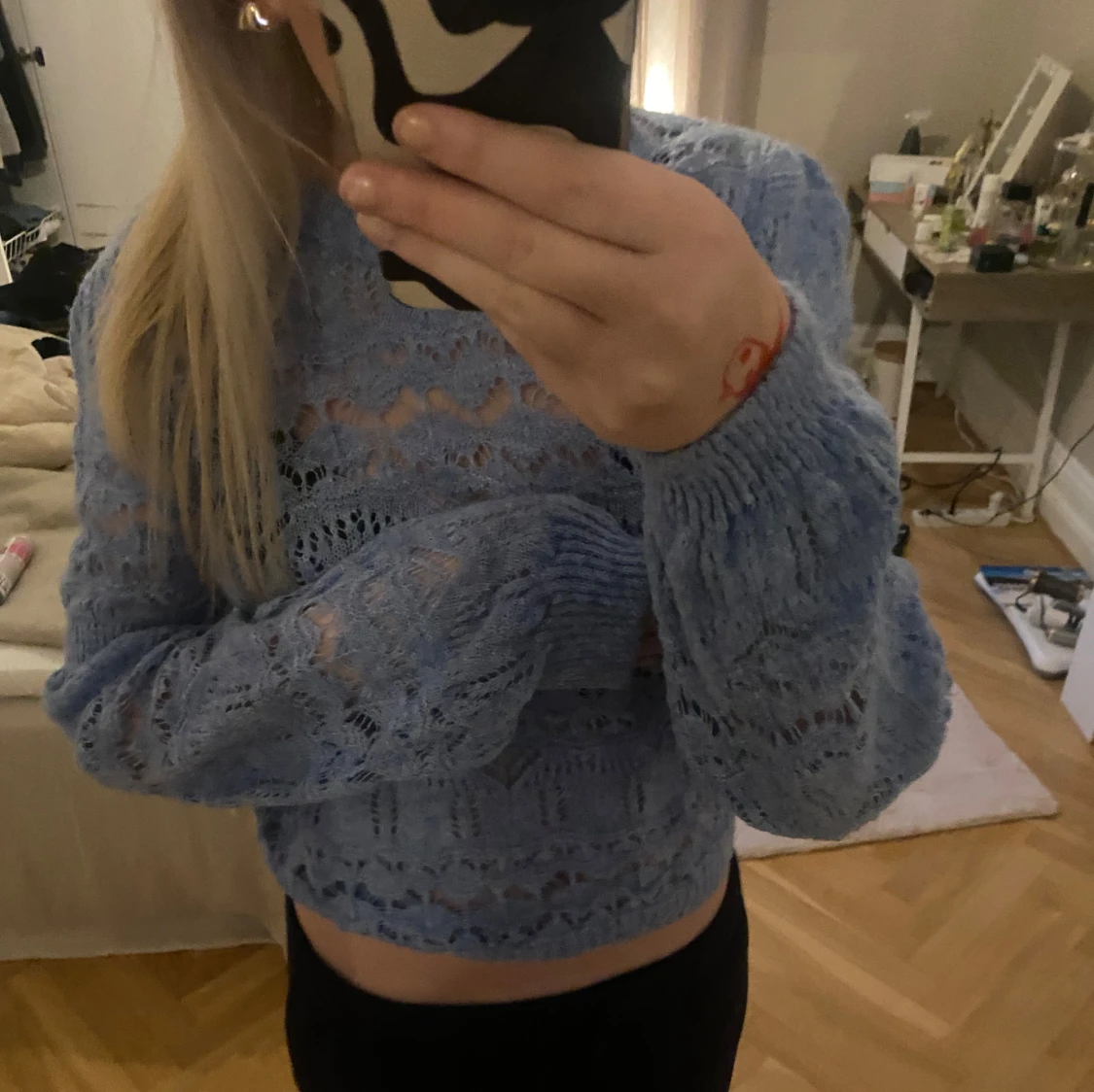 Säljer en sååån söt blå stickad tröja 💓💓💓väldigt fin på sommaren! Skriv om du har frågor