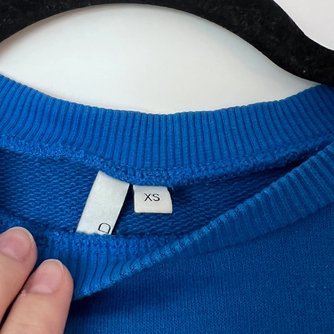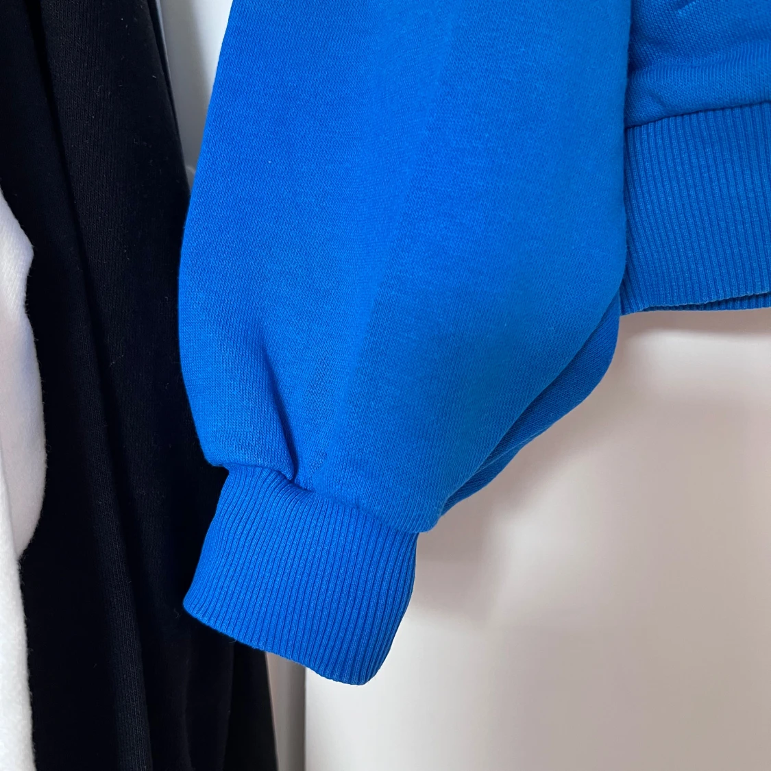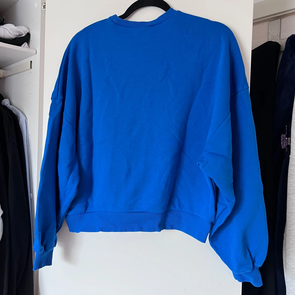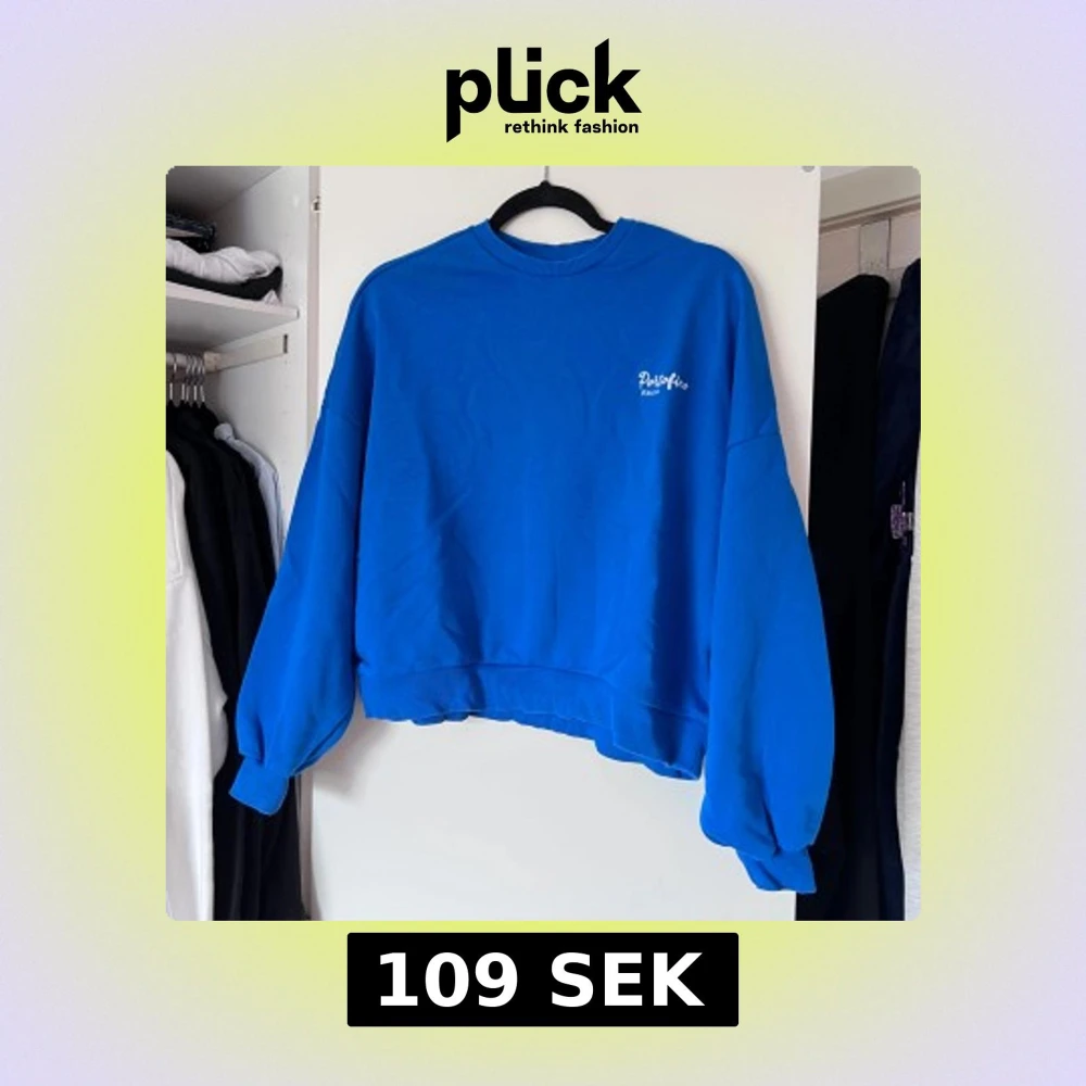Säljer en snygg blå sweatshirt från Nelly.com med broderad text på bröstet. Tröjan har långa ärmar, ribbade muddar vid ärmslut och nederkant och är oversized i storleken. Perfekt för en avslappnad stil. Sparsamt använd 💙Önskar du veta exakta mått? Tveka inte att höra av dig!