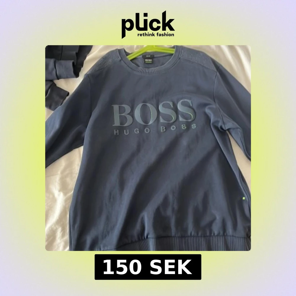 Säljer en stilren blå sweatshirt från Hugo Boss med deras logotyp tryckt på framsidan. Tröjan har långa ärmar och en rund halsringning. Perfekt för en avslappnad stil.
