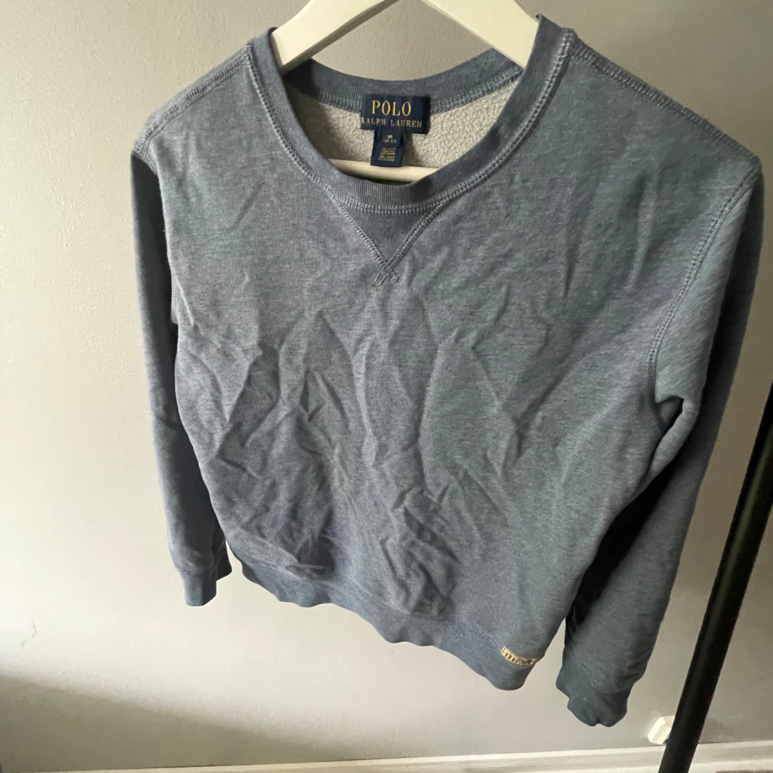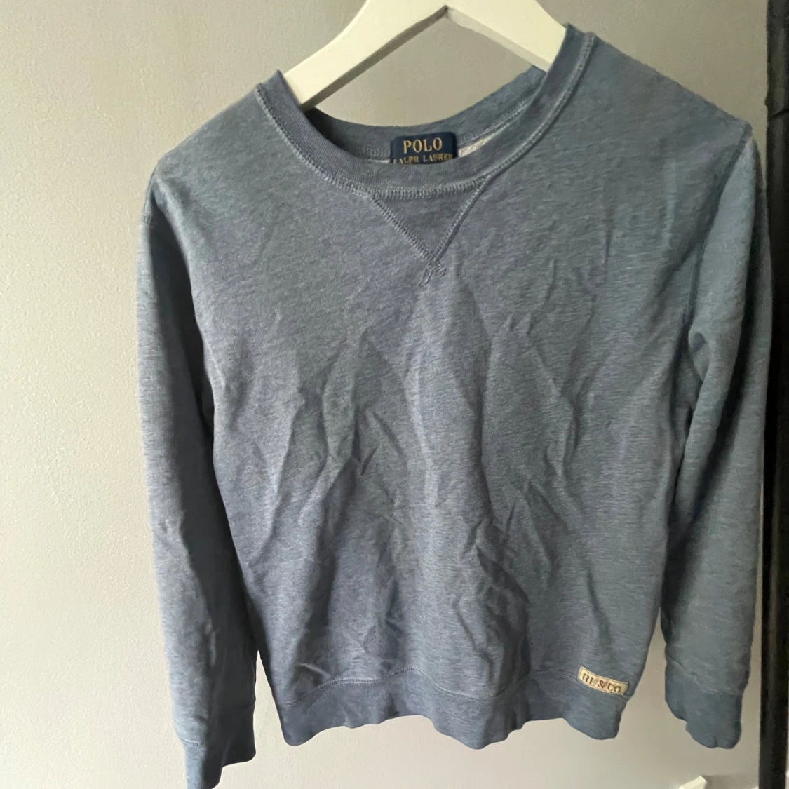 Snygg blå sweatshirt från Polo Ralph Lauren i storlek M10/12år. Tröjan har rund hals, långa ärmar och en diskret etikett med RP&CO vid nederkanten. Mjuk bomullskänsla och klassisk passform, perfekt för chill dagar. Enkel och stilren design utan mönster.