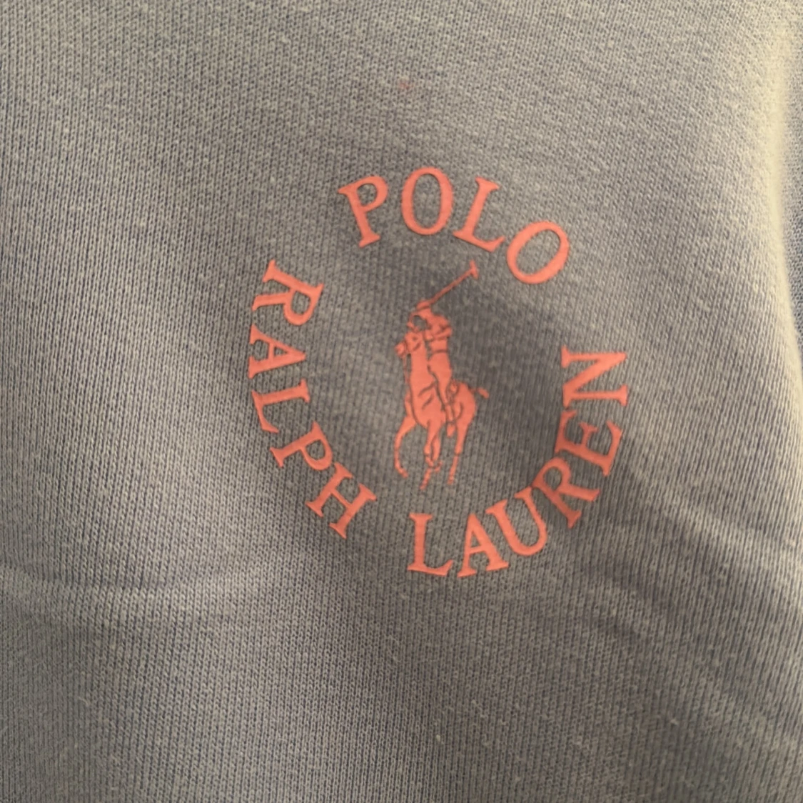Säljer en snygg ljusblå sweatshirt från Polo Ralph Lauren med deras logga i rosa på bröstet. Tröjan har långa ärmar och en klassisk rund halsringning. Perfekt för en avslappnad stil. 🩵