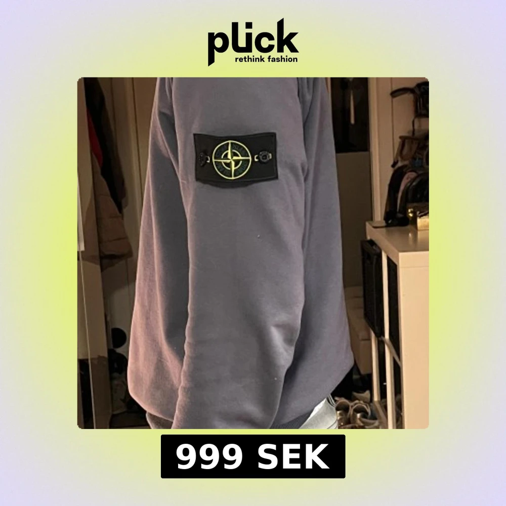 Säljer en grå sweatshirt från Stone Island med den klassiska logotypen på vänster ärm. Tröjan har rund hals, ribbade muddar och en clean look som är enkel att matcha. Perfekt för dig som gillar streetwear och vill ha något stilrent.