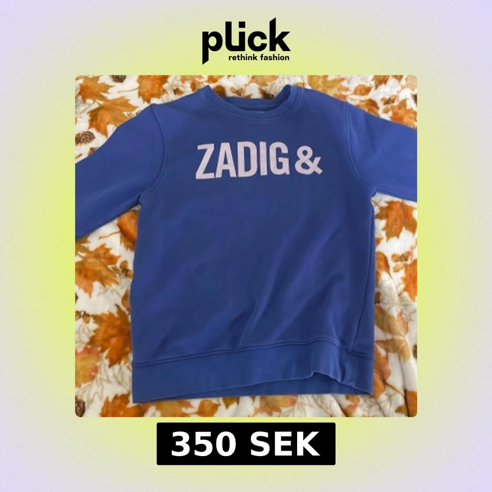 Säljer en blå sweatshirt från Zadig & Voltaire med vit texttryck både fram och bak. Tröjan har rund hals, långa ärmar och en klassisk passform. Perfekt för dig som gillar stilrena och coola märkesplagg.
