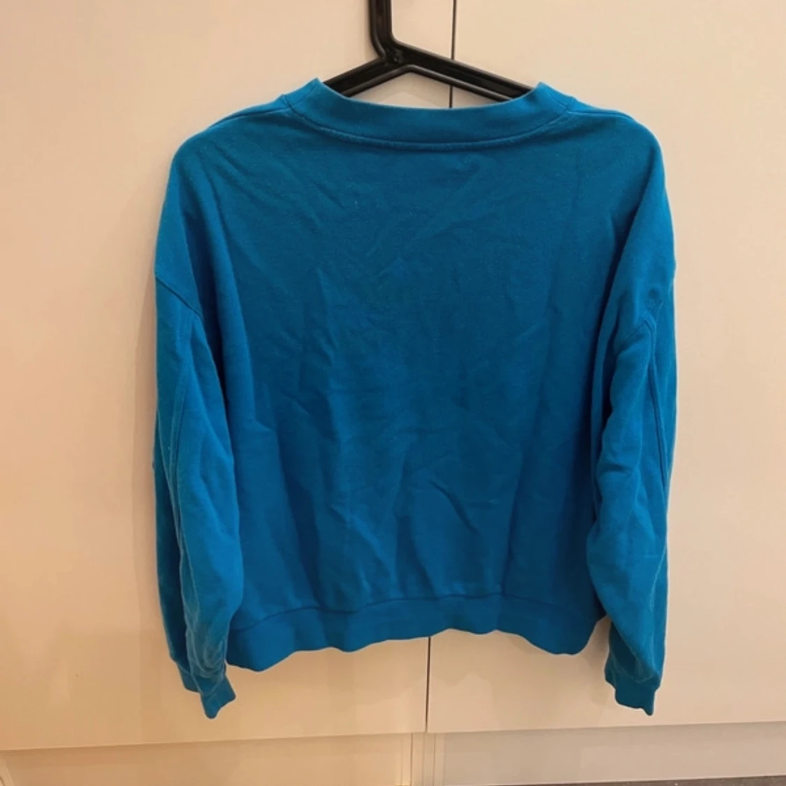 En enkel och chill blå sweatshirt från Weekday med rund hals och långa ärmar. Tröjan har loose passform och är gjord i mjuk bomull, perfekt för att hänga med kompisar eller bara chilla hemma. Snygg att styla med jeans eller leggings.