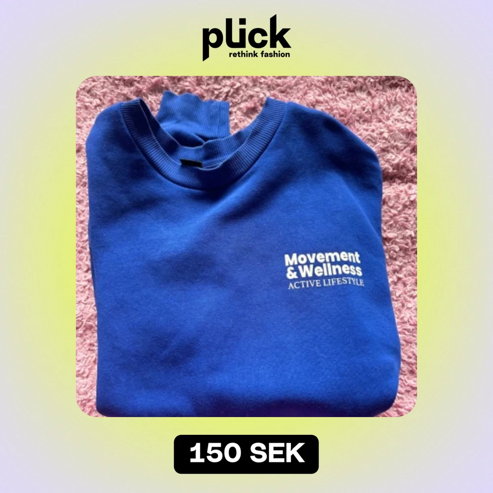 Säljer en snygg blå sweatshirt med tryck 'Movement & Wellness Active Lifestyle' på framsidan. Tröjan är perfekt för en aktiv livsstil och har en skön passform. Den är i bra skick och passar perfekt för både vardag och träning.