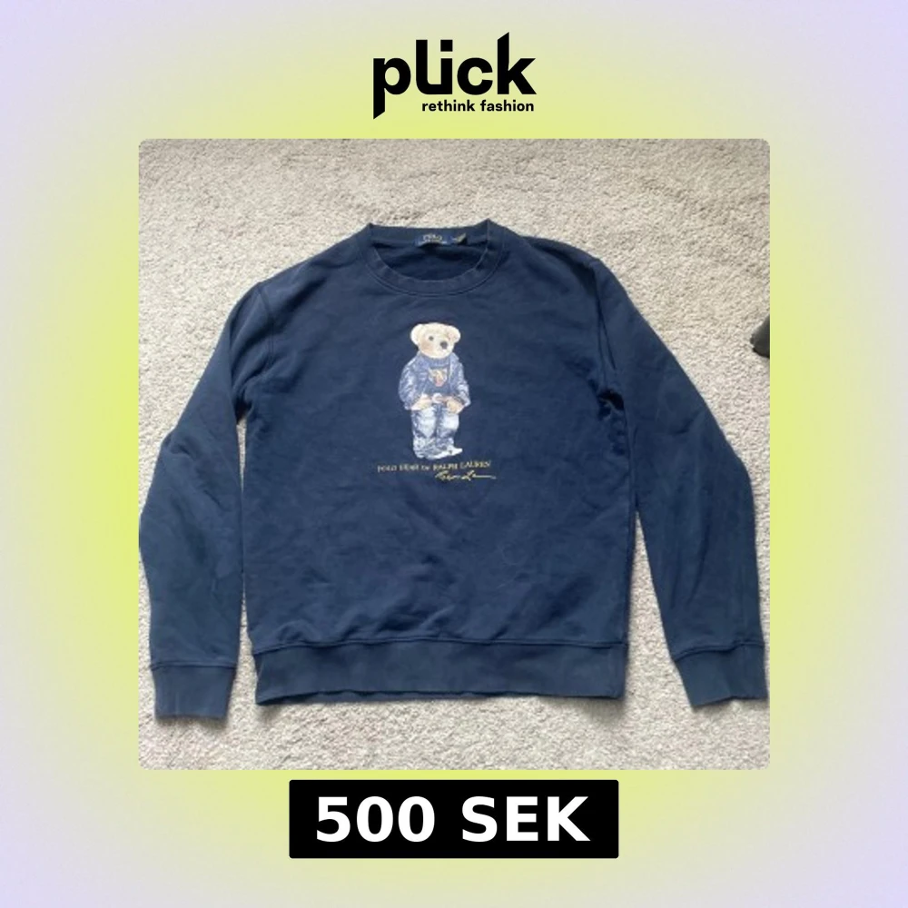 Mörkblå sweatshirt från Polo Ralph Lauren i storlek M med ikoniska Polo Bear-trycket på bröstet. Perfekt för dig som gillar klassisk streetstyle med en twist. Skriv vid fler frågor😁