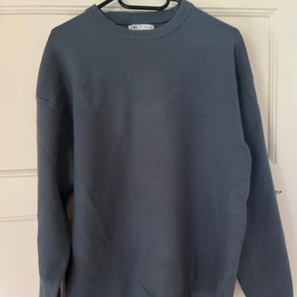 Blå sweatshirt från Zara Använd men är i mycket bra skick, säljer den endast för den är för liten på mig
