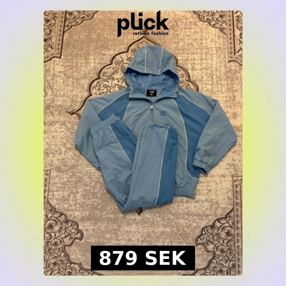 Säljer en ljusblå träningset från FSBN med huva och dragkedja. Jackan har vita detaljer längs ärmarna och sidorna, samt elastiska muddar vid ärmslut och nederkant. Perfekt för en sportig look!🩵 Byxorna är Storlek XS och Jackan är S men byxorna blir som ett S eftersom den är baggy. Priset är inte i hugget, kan diskutera