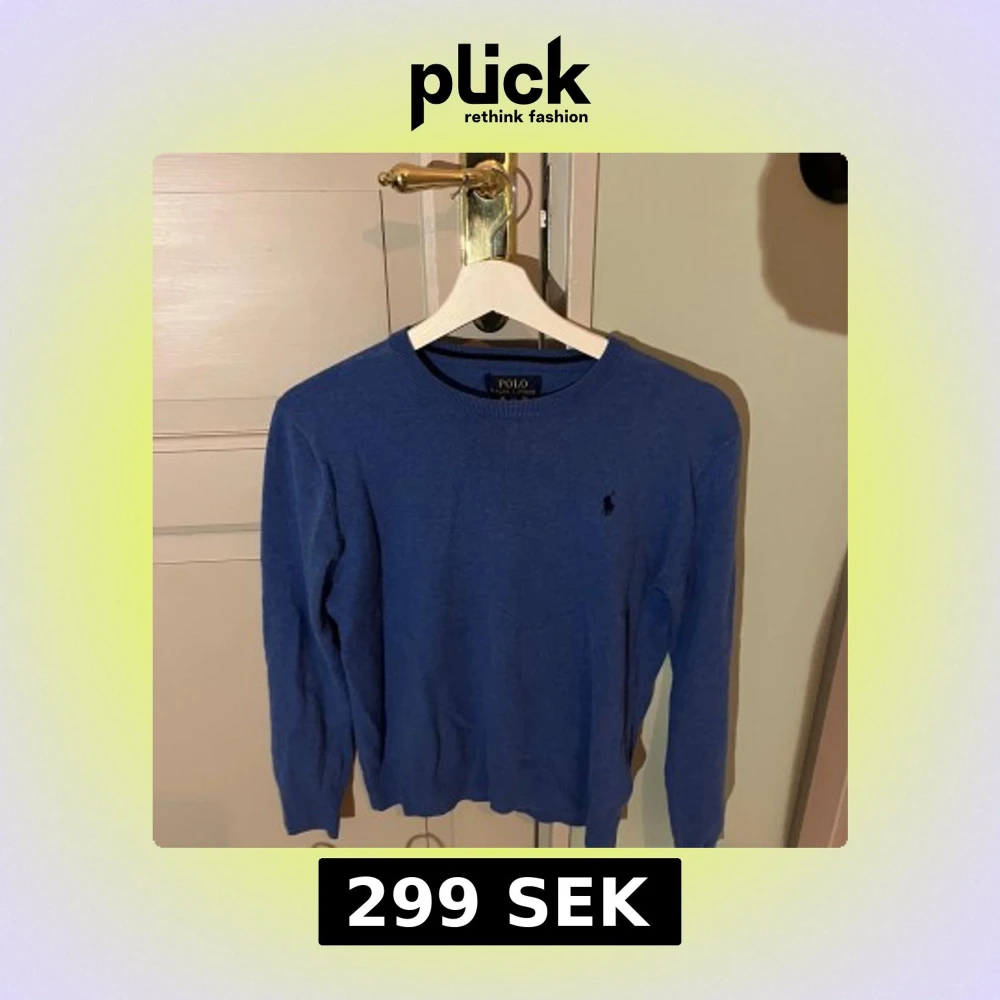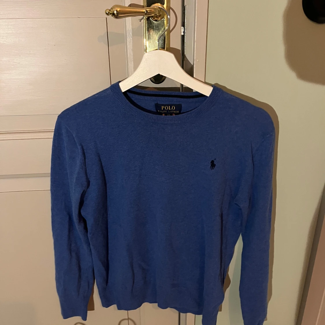 Säljer en klassisk blå tröja från Polo Ralph Lauren med rund halsringning och diskret broderad logga på bröstet. Tröjan har lång ärm och är perfekt för en stilren vardagslook. (Sitter litet i storleken)