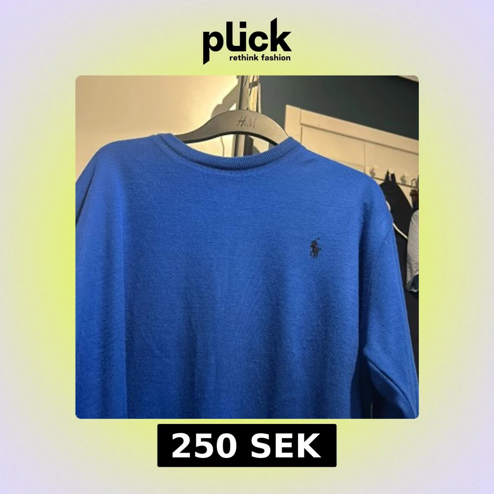 Säljer en stilren blå tröja från Ralph Lauren med deras ikoniska logga broderad på bröstet. Tröjan har en klassisk rund hals och långa ärmar, perfekt för en avslappnad men ändå snygg look.