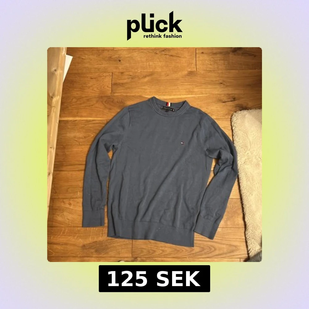Snygg blå tröja från Tommy Hilfiger i storlek XS. Klassisk rund halsringning med ribbade muddar och diskret broderad logga på bröstet. Perfekt basic med stilren vibe och mjukt material.