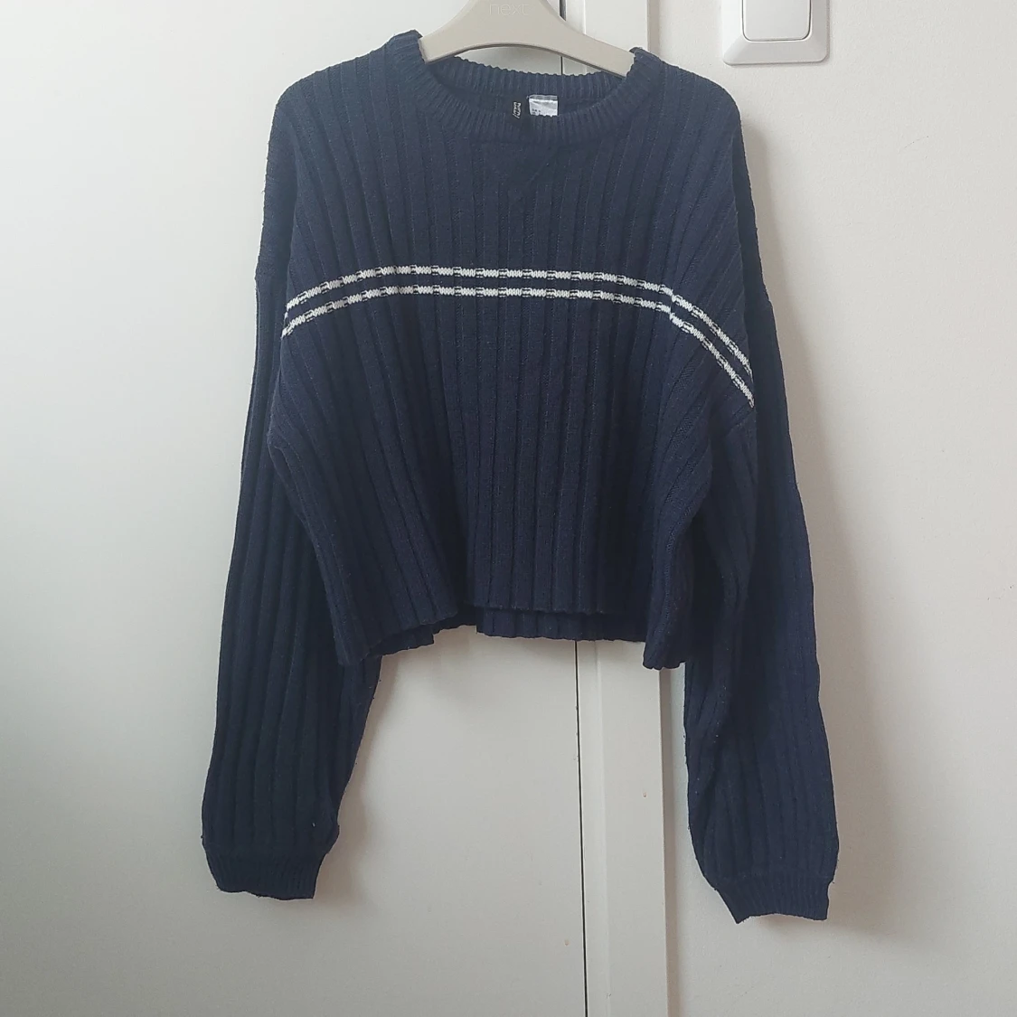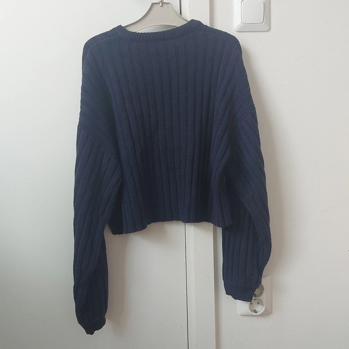 Det har en typ oversized fit och är jätte snygg och varmt! Bra att använda på vintern, och i bra skick.