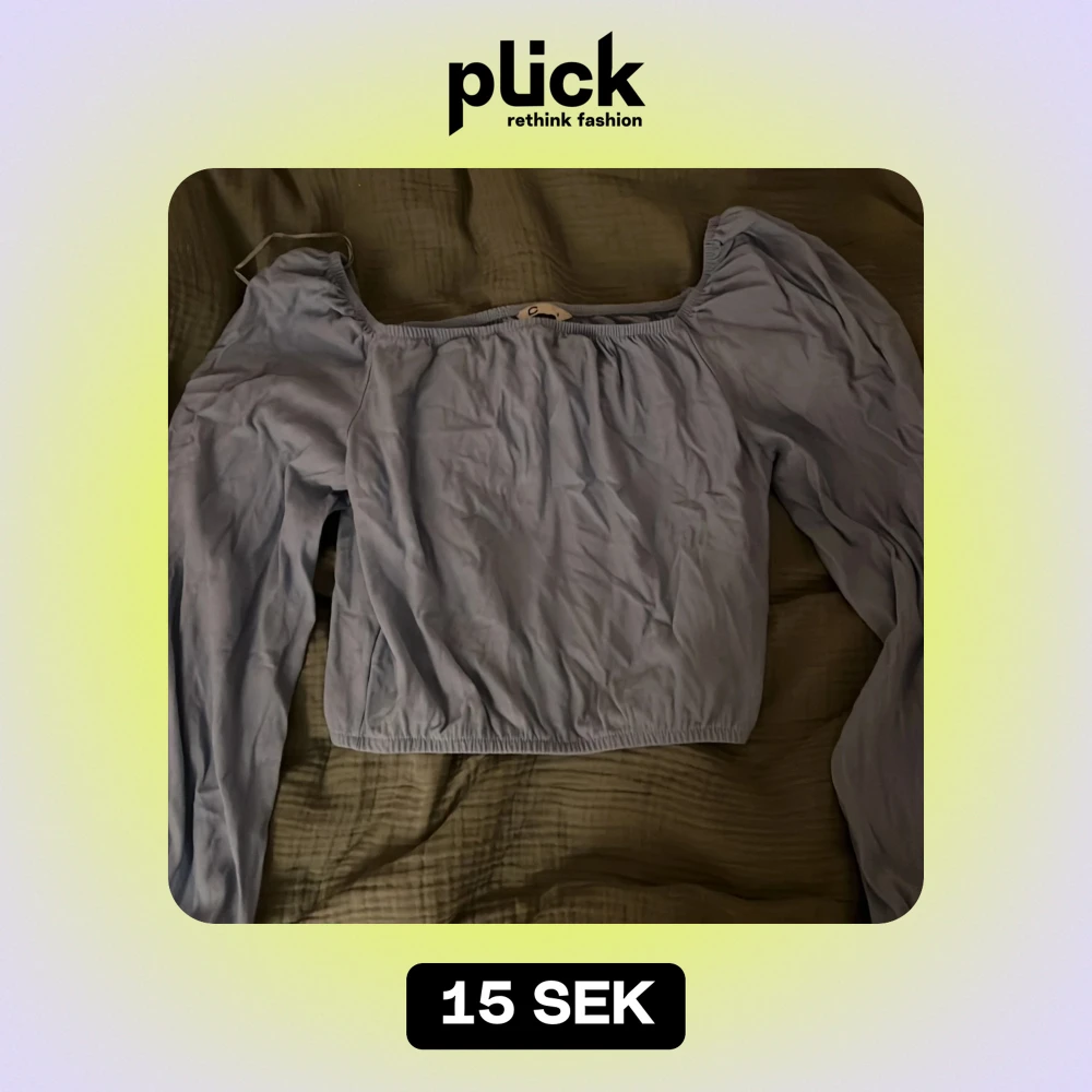 Blå tröja som är ganska kort slutar vid naveln jätte fin och är i bra skick. Lite puffiga armar