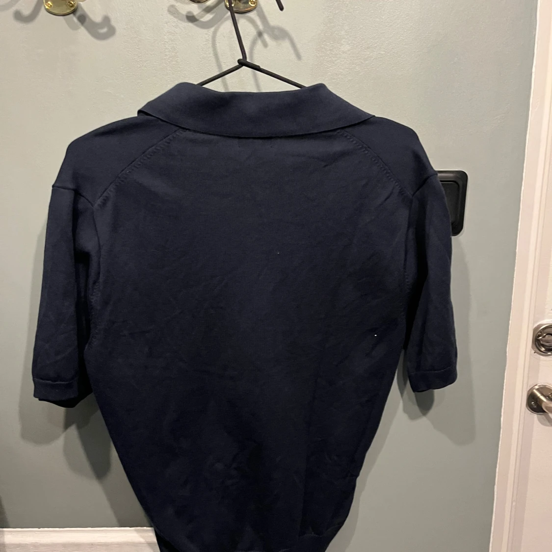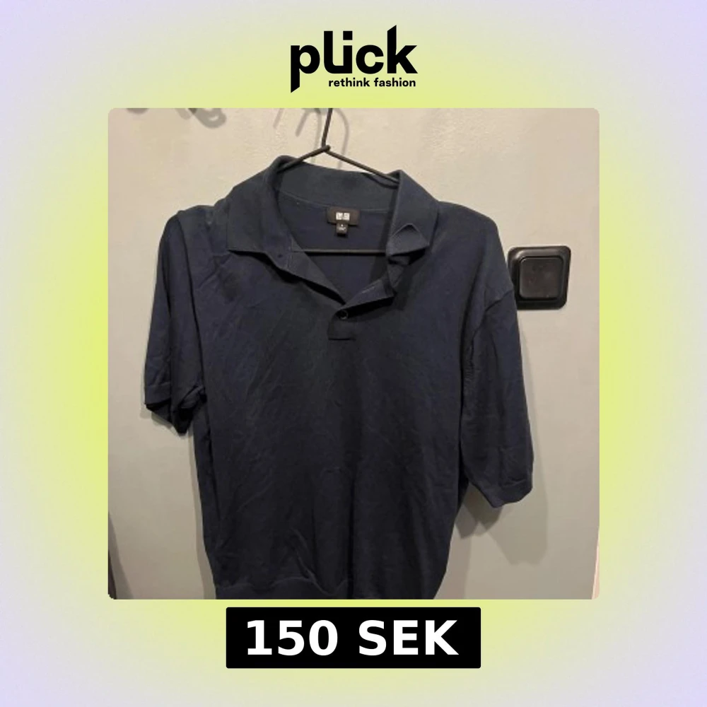 Säljer en stilren mörkblå pikétröja från Uniqlo i storlek S. Tröjan har klassisk krage, korta ärmar och två knappar framtill. Perfekt för en clean och enkel look. Materialet är mjukt och känns skönt mot huden. Passar XS också.