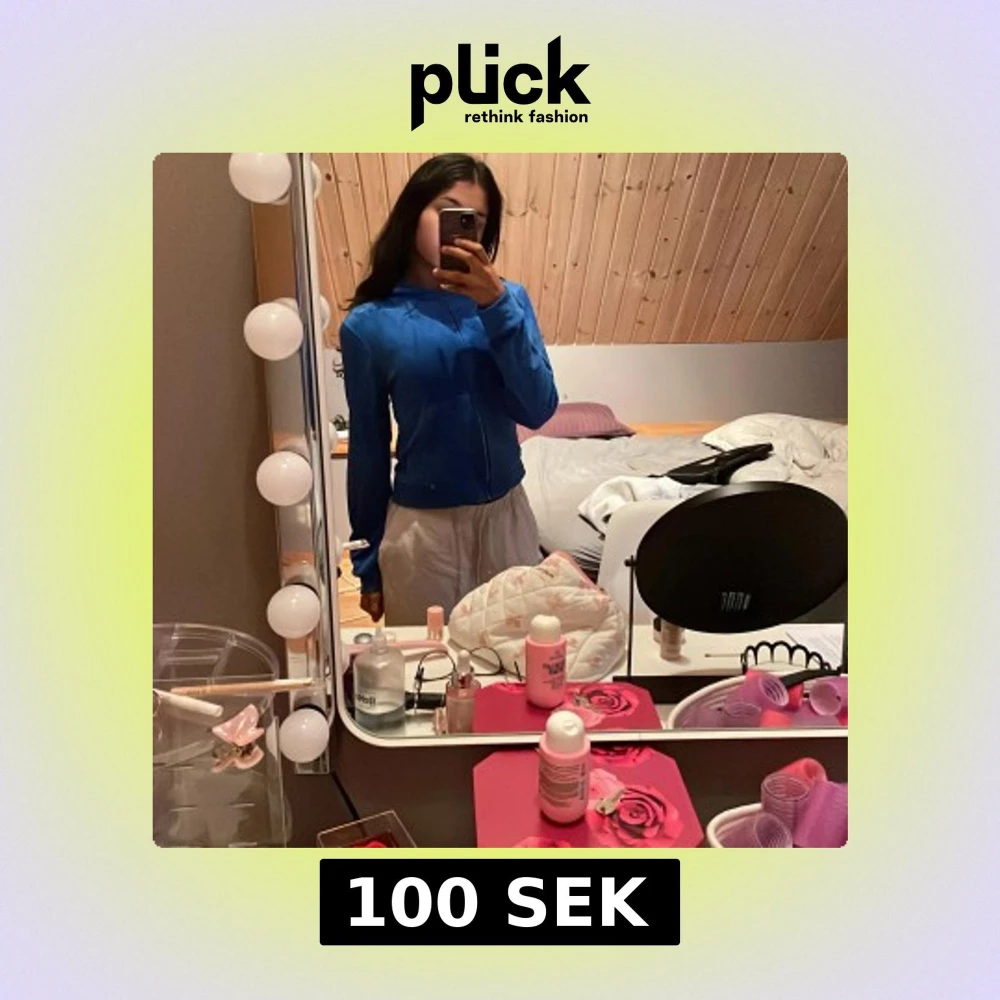 Säljer en blå hoodie med dragkedja. Tröjan har långa ärmar och är i en mjuk bomullsblandning. Perfekt för en chill look och enkel att matcha med andra plagg.
