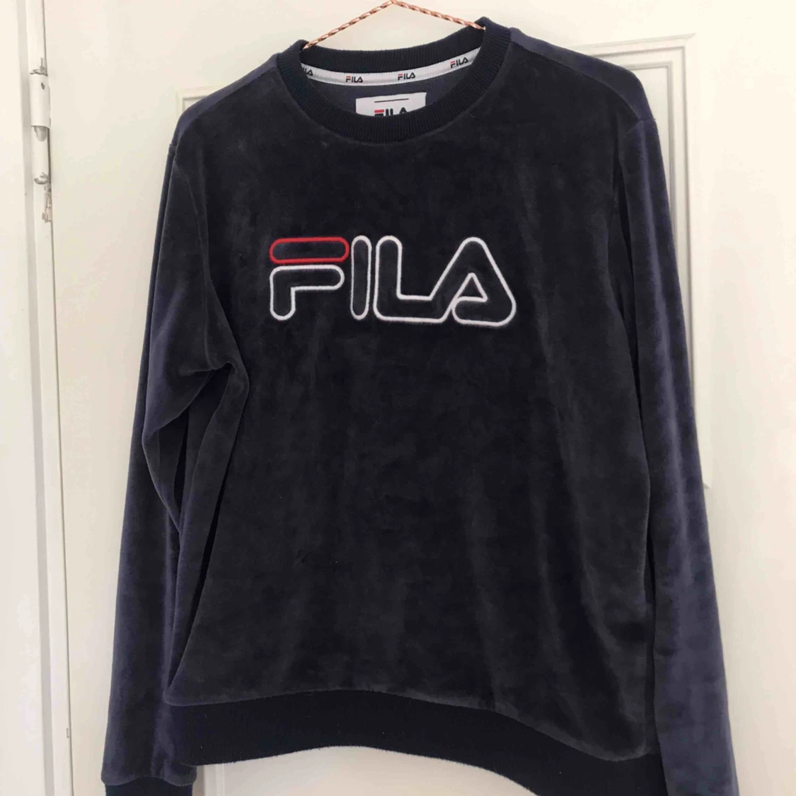 Tröja från Fila i marinblå sammet, superfint skick! Kan frakta, köparen står då för frakten🥰🥰