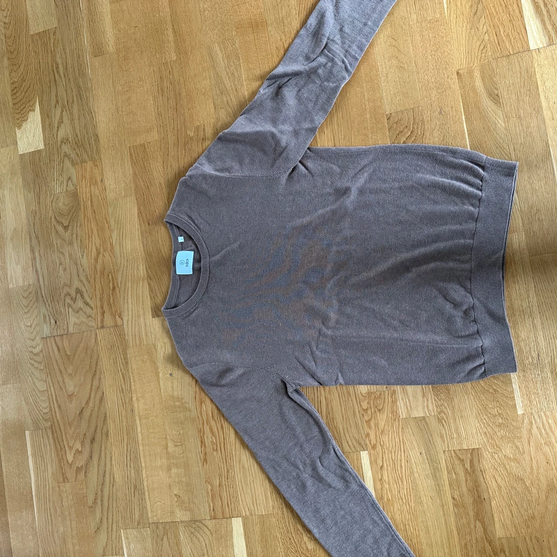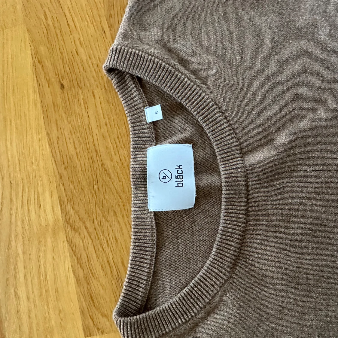En stilren beige stickad tröja från Bläck i storlek S. Tröjan har rund halsringning, ribbade muddar och lång ärm. Perfekt för lager-på-lager och enkel att matcha med jeans eller chinos.