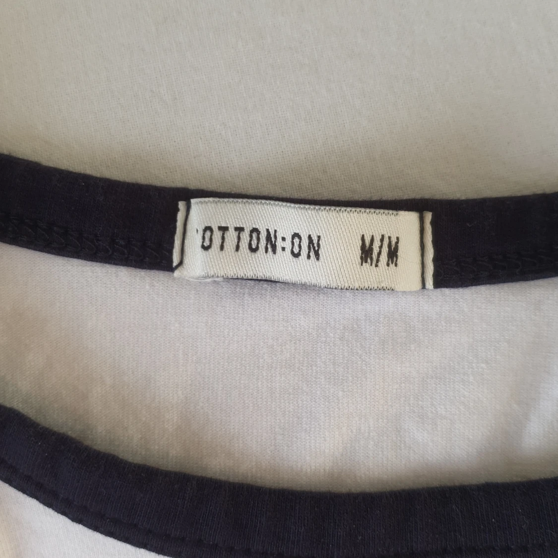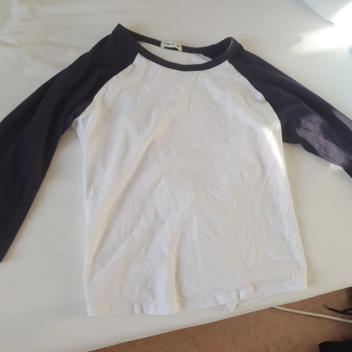 Crop top med lång arm, blå och vit, använd men inga skador. Är för tajt för mig trots medium