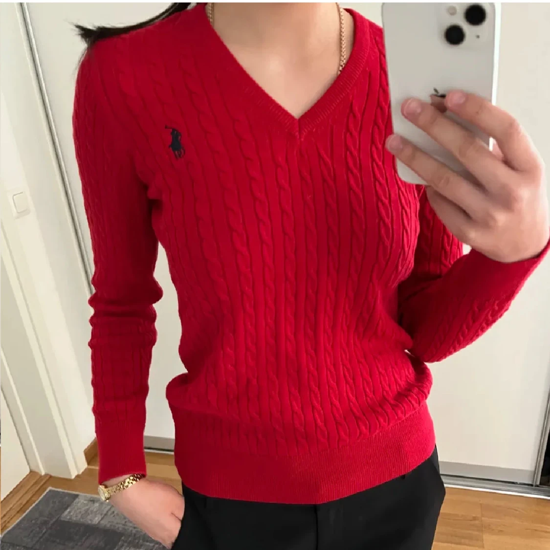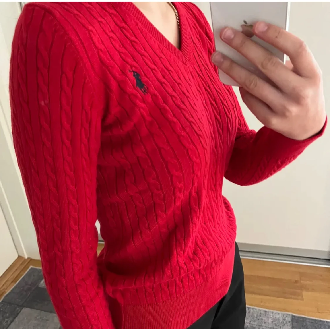 Säljer en röd kabelstickad tröja som liknar Ralph Lauren. Den har en v-ringning och ett broderat märke på bröstet. Perfekt för både vardag och finare tillfällen nu i höst och vinter! Tröjan är i nyskick och inte använd!!❤️Pris kan såklart diskuteras!