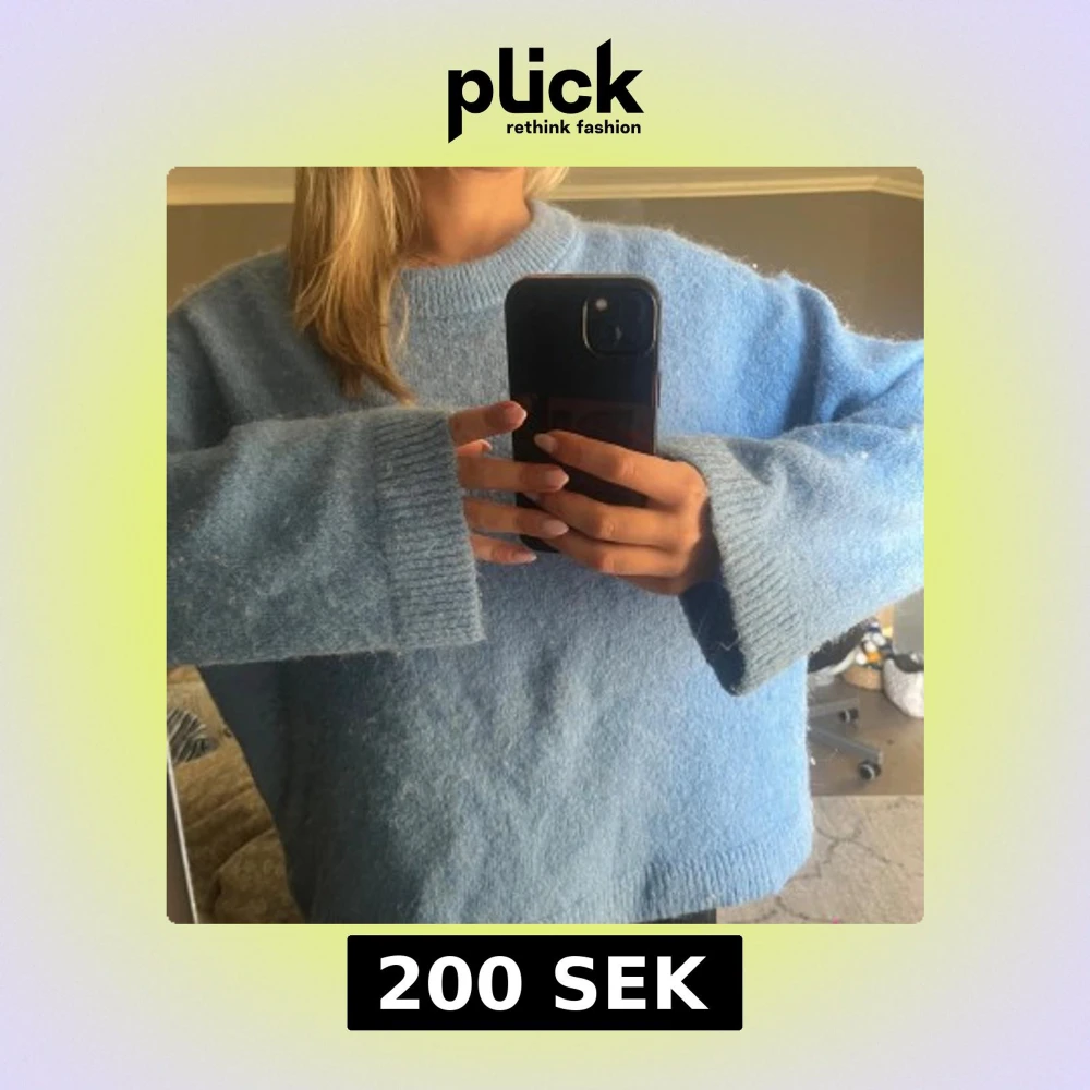 Mysig blå stickad tröja från Gina Tricot i oversized modell. Inte använt på länge. Perfekt för den kalla hösten