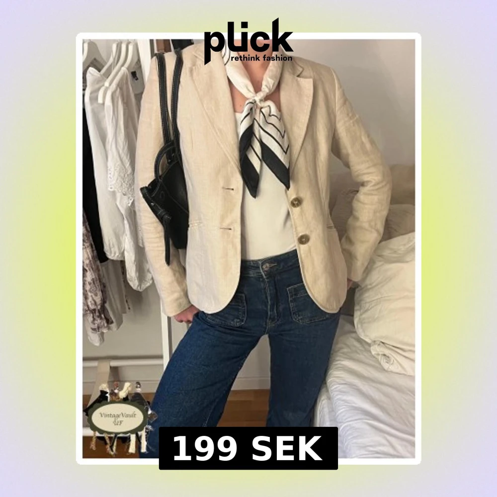 Jättefin beige kavaj i linnetyg! Passar både till vardag och finare tillfällen! Storleken är 34 och passar bra till S. Bara att höra av dig vid funderingar!