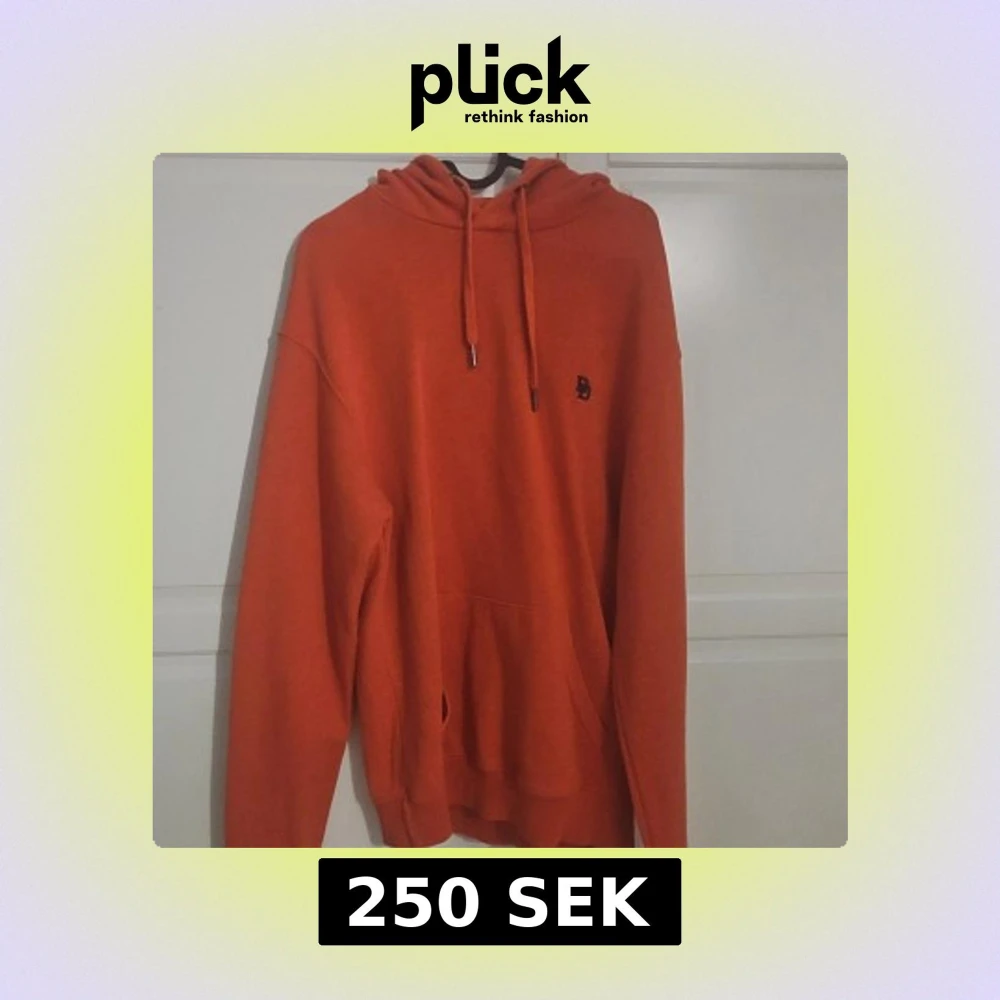 Säljer en snygg orange hoodie från Blend med en liten broderad logga på bröstet. Den har en klassisk känguruficka och justerbar huva med snören. Perfekt för en avslappnad stil. Pris kan diskuteras