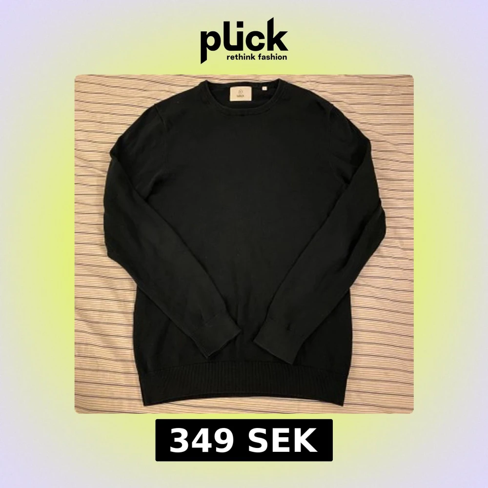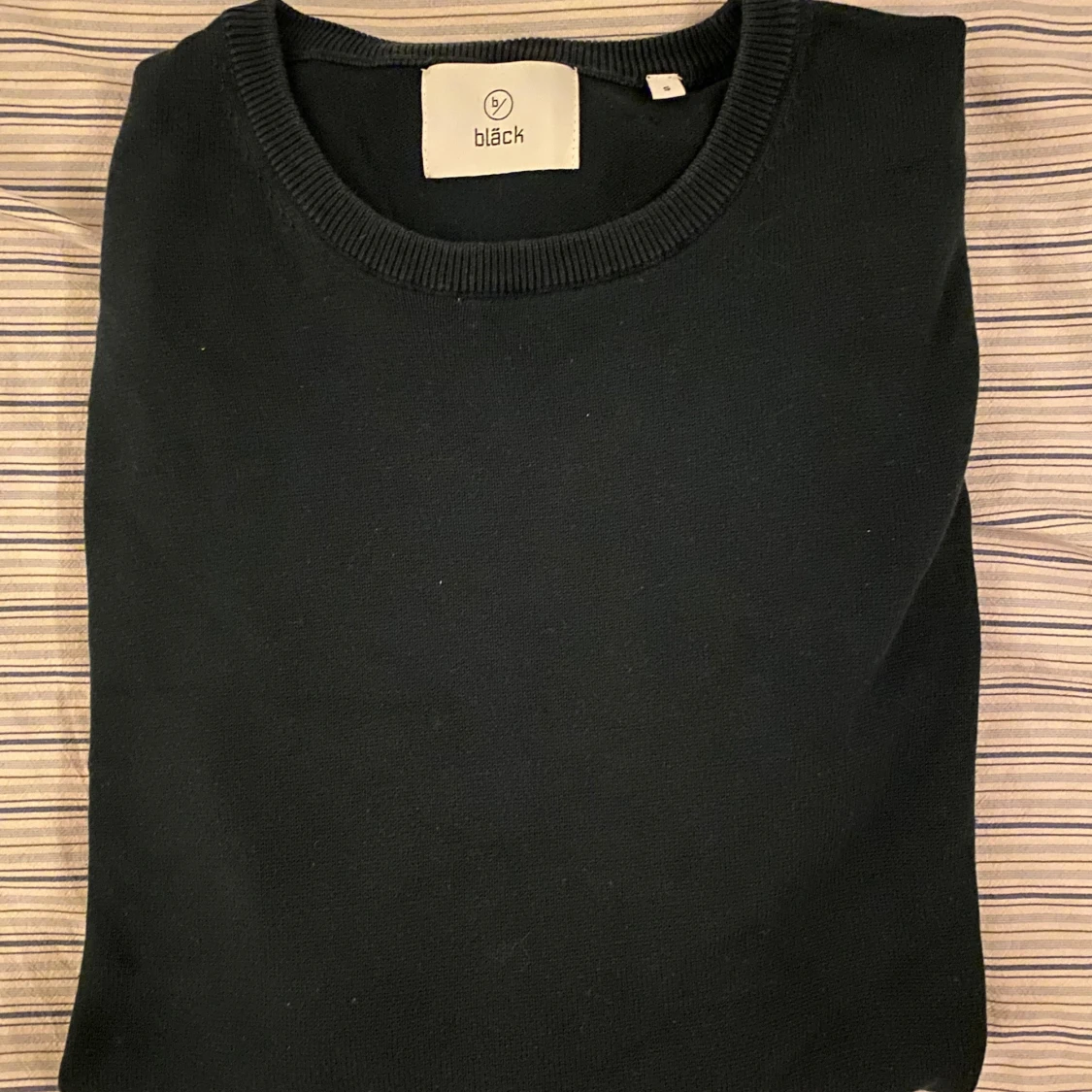 En stilren mörkblå stickad tröja från Black i storlek S. Tröjan har rund halsringning och långa ärmar med ribbade muddar vid ärmslut och nederkant. Perfekt för dig som gillar enkel och clean look.