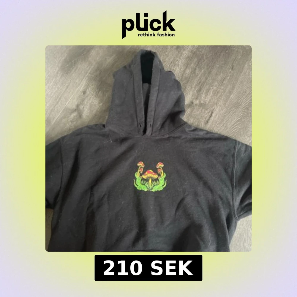 Svart hoodie från A.Lab med färgglatt tryck av svampar och texten 'Dream Land' på ryggen. Framsidan har ett mindre svampmotiv. Tröjan har huva och är tillverkad i en mjuk bomulls- och polyestermix. Perfekt för dig som gillar unika och coola prints.