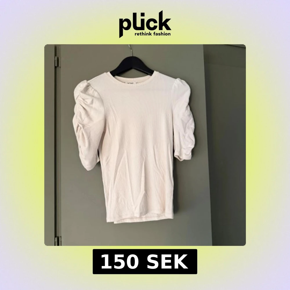 Supersöt vit ribbad topp från Monki i storlek XS. Modellen har korta puffärmar.