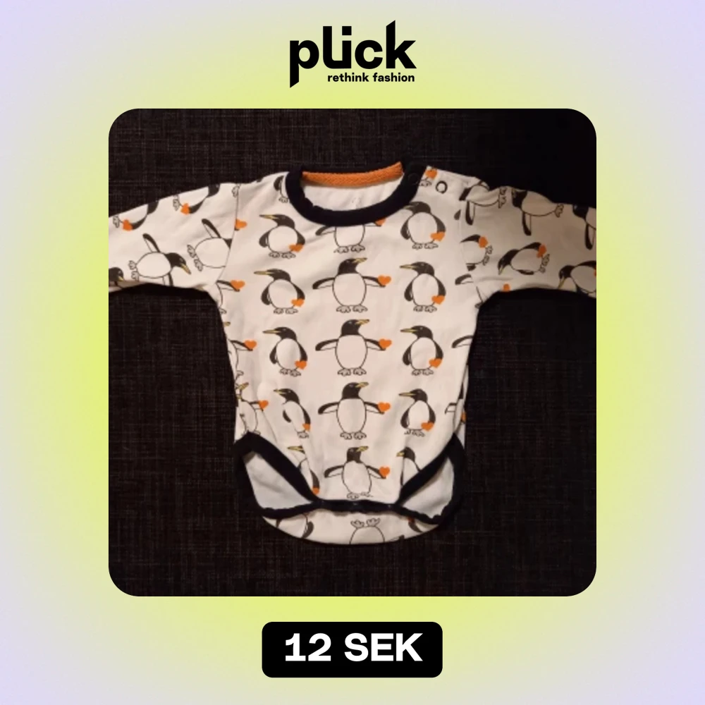 Vit body med pingviner i storlek 56 från Pytteliten. I fint begagnat skick, inga hål eller fläckar. Unisex Tvättad i parfymfritt tvättmedel och utan sköljmedel.