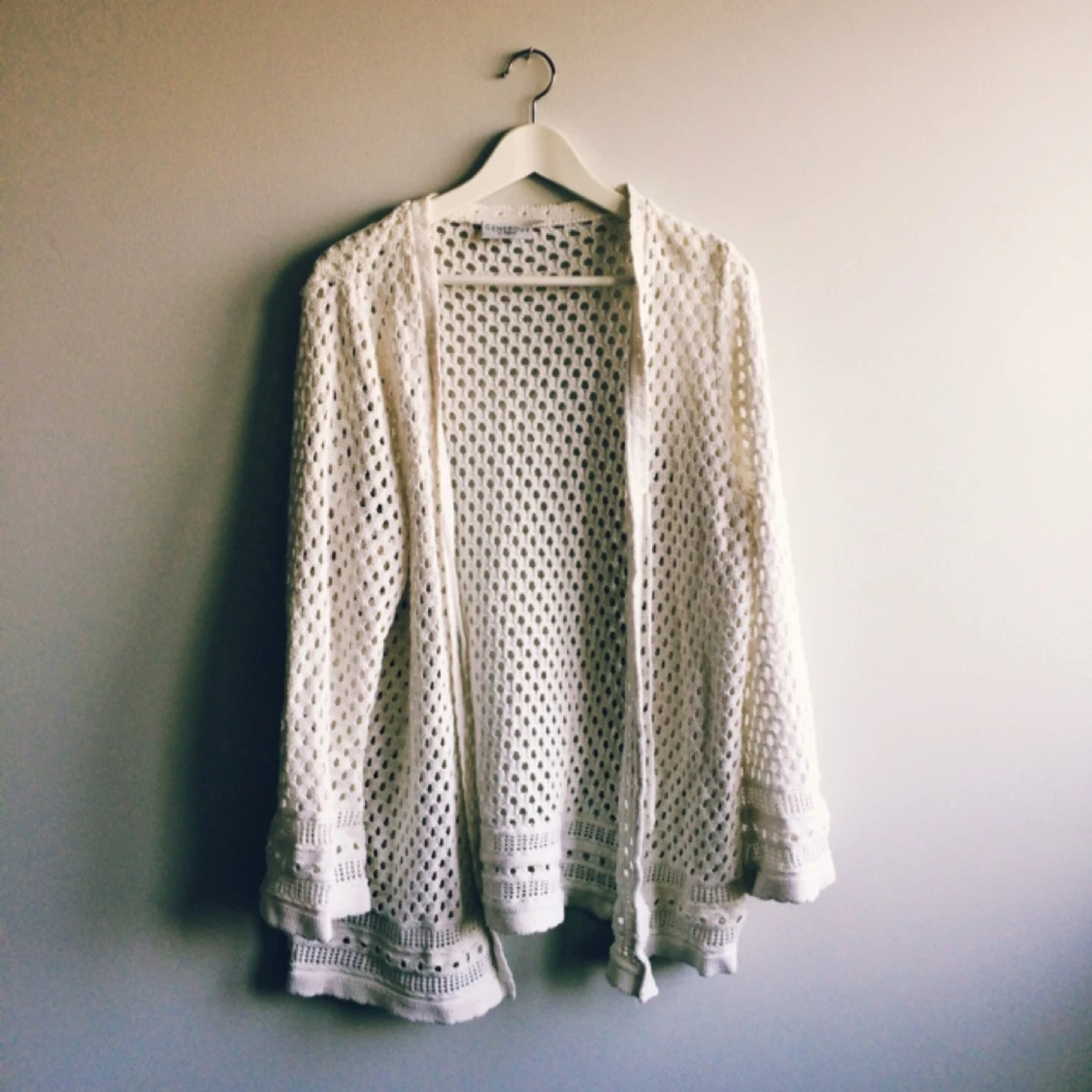 Stor mysig kofta med knyte fram! Helvit och inte gräddvit som den ser ut på bilderna. 🌎