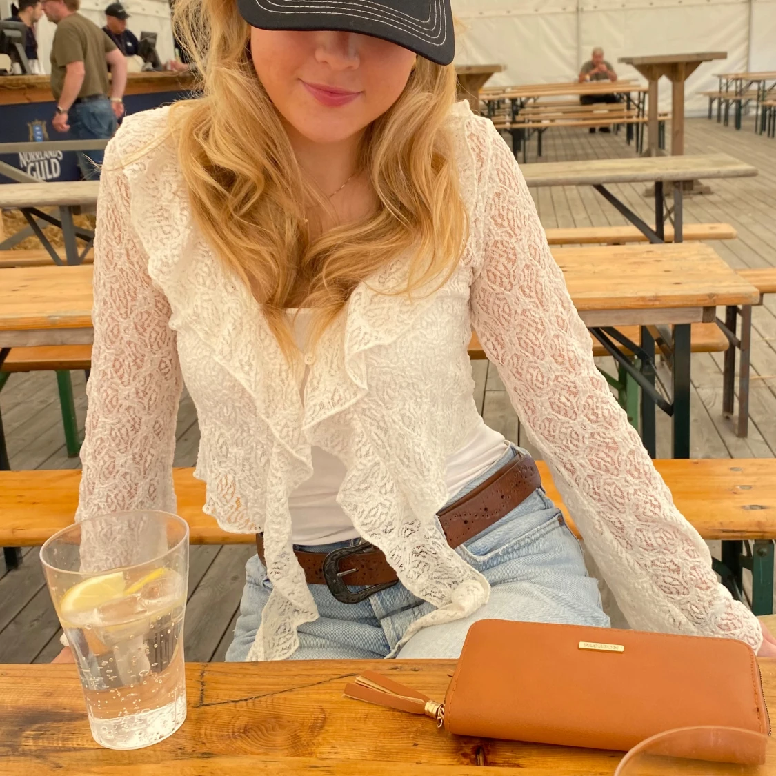 Supersnygg virkad kofta med knapp framtill, perfekt att dra över en klänning på sommarkvällen, mycket bra skick och postas snabbt!