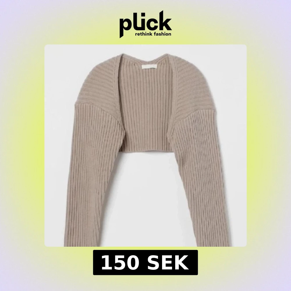 Säljer en beige croppad kofta med lång ärm och ribbad struktur. Perfekt att slänga över ett linne eller t-shirt för en chill och trendig look. Enkel att matcha och supermjuk i materialet.